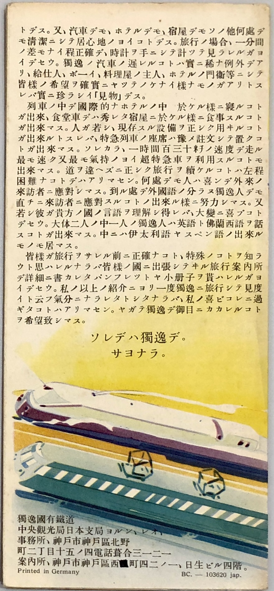 同局が当時日本で頒布したブックレット(独文)付属 1936年 ドイツ刊 (Printed in Germany)