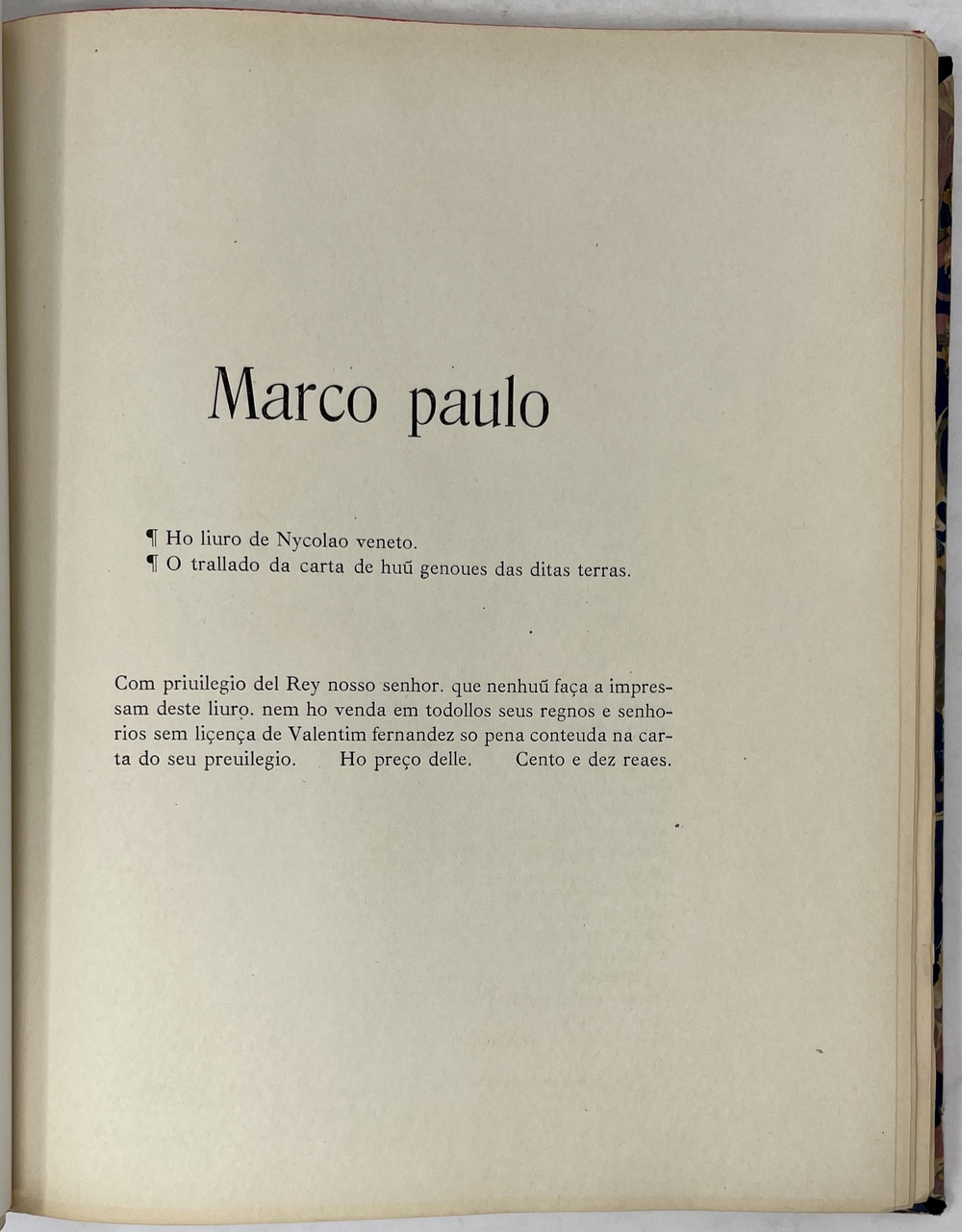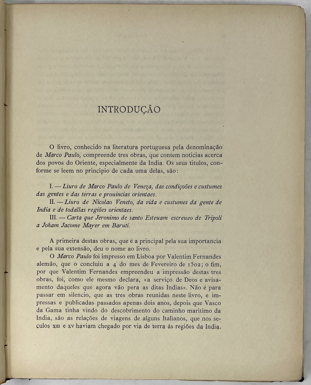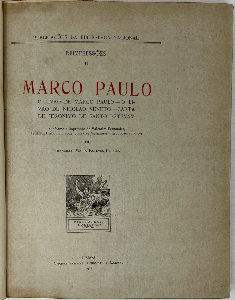 MARCO PAULO: O LIVRO DE MARCO PAULO-O LIVRO DE NICOLAO VENETO-CARTA DE JERONIMO DE SANTO ESTEVAM. Conforme a impressão de Valtentim Fernandes, feita em Lisboa em 1502; com tres fac-similes, …(Publicações da Biblioteca Nacional, Reimpressões II)
