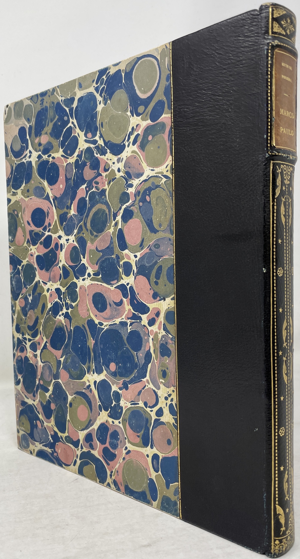 Contemporary half leather on marble boards with original covers.