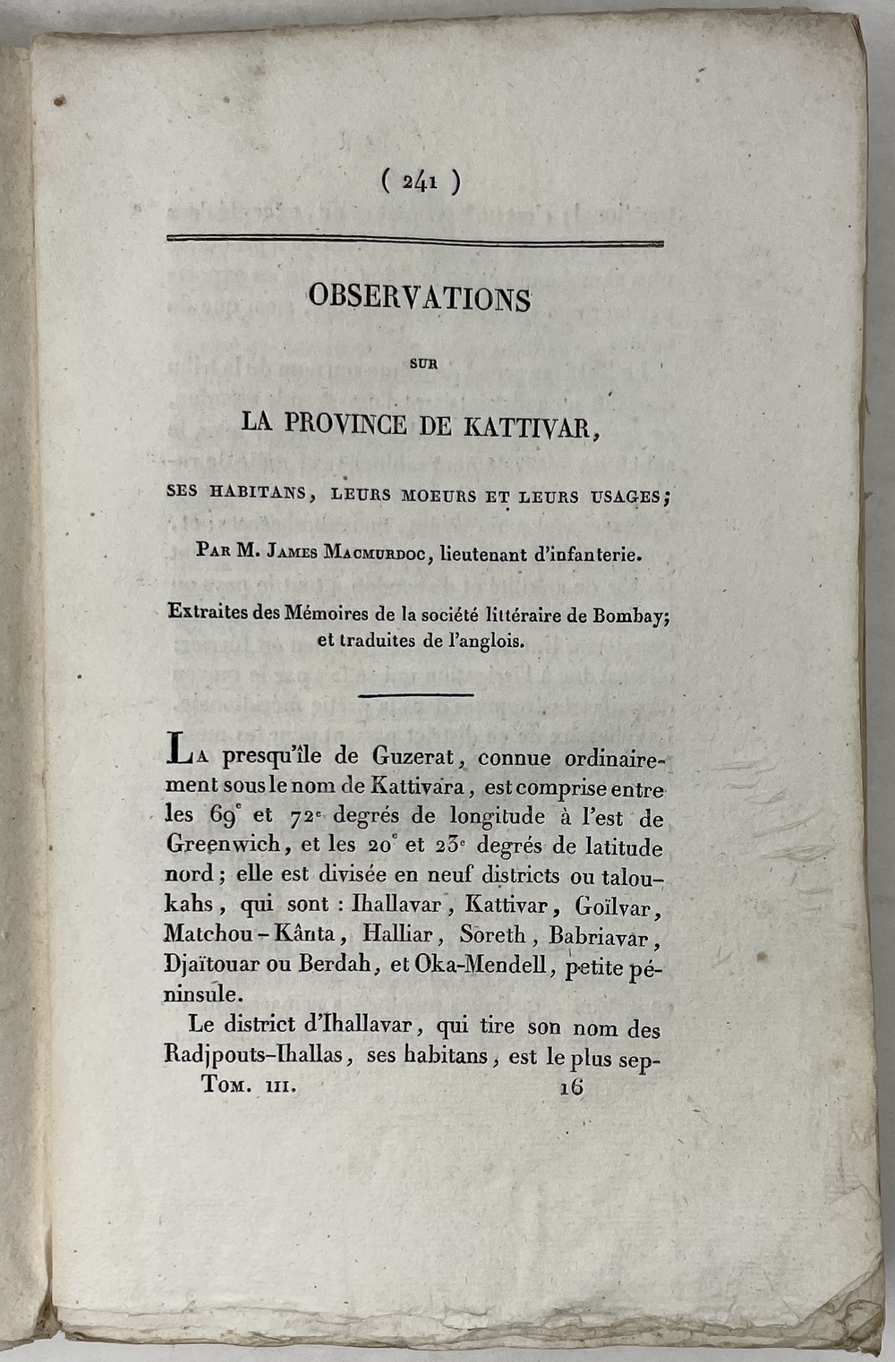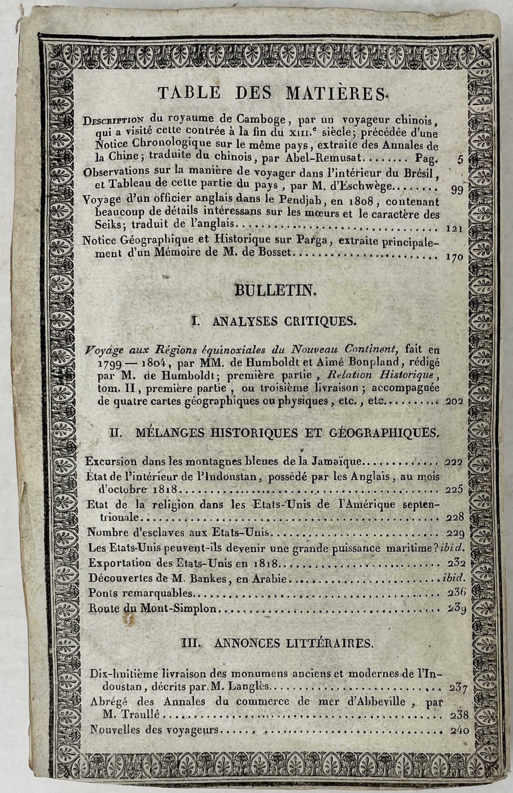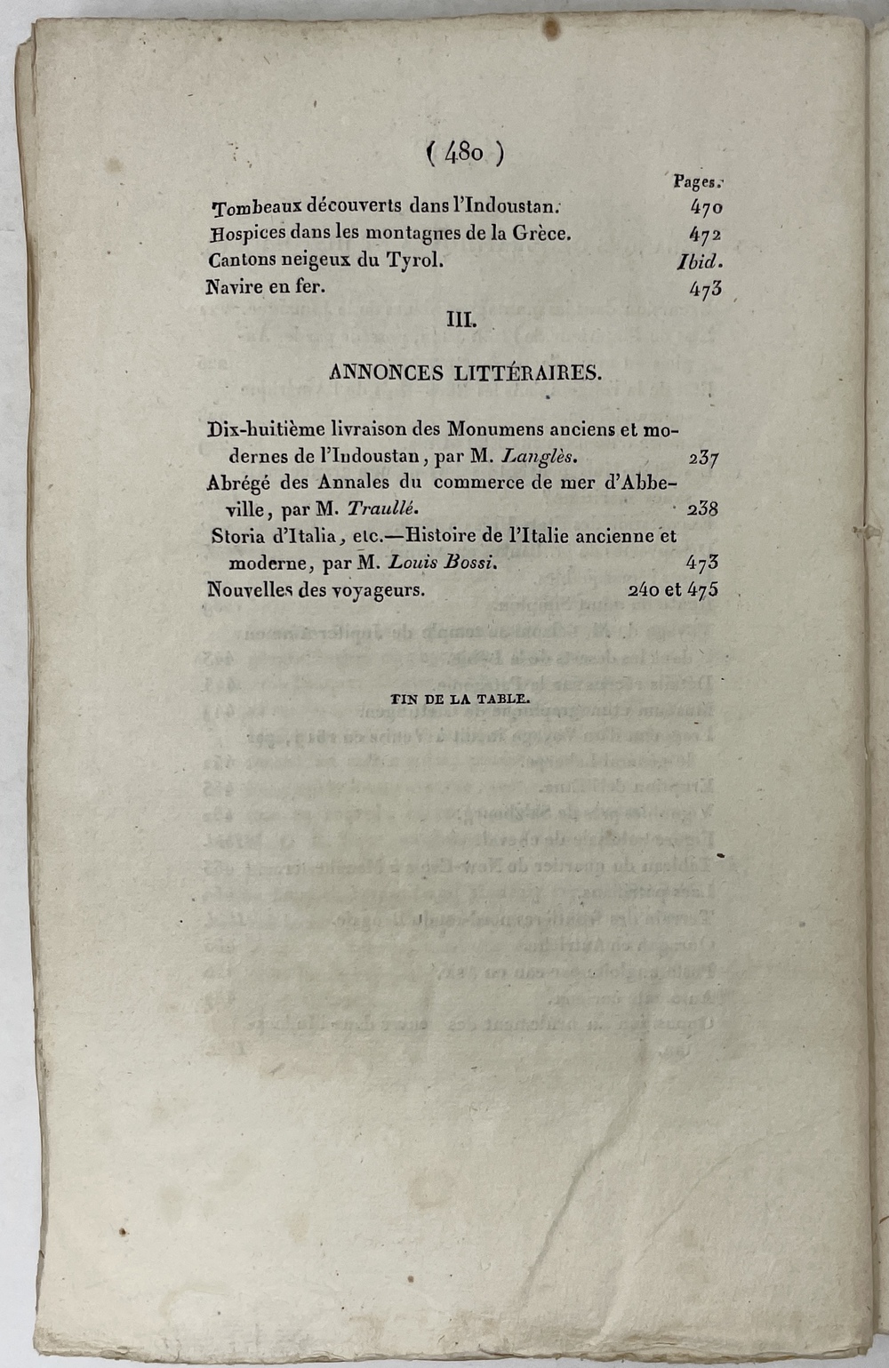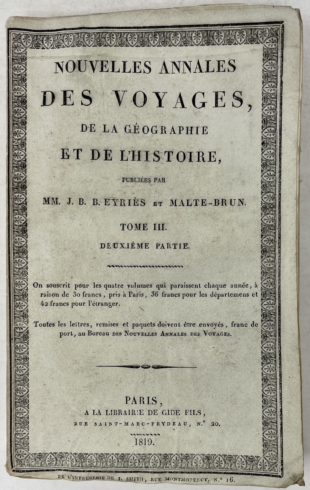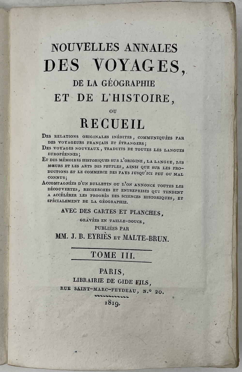 NOUVELLES ANNALES DES VOYAGES, DE LA GÉOGRAPHIE ET DE L’HISTOIRE,…AVEC DES CARTES ET PLANCHES,…TOME III.