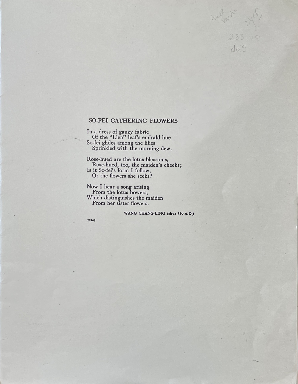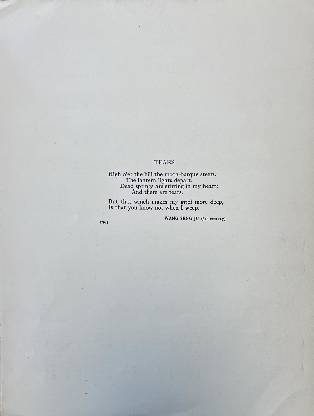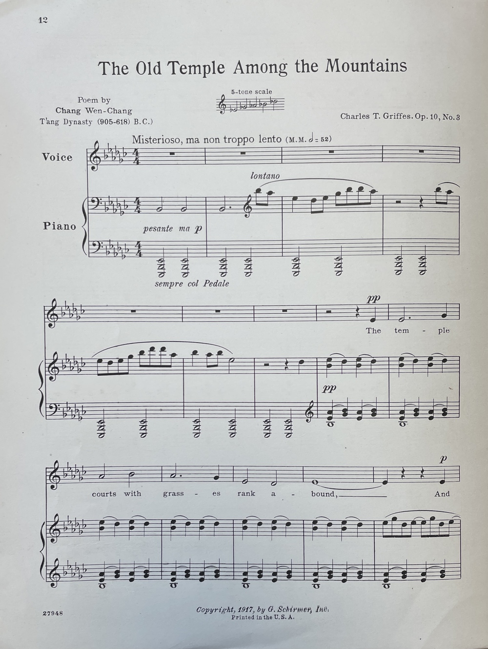 FIVE POEMS OF ANCIENT CHINA AND JAPAN. For medium voice and Piano.