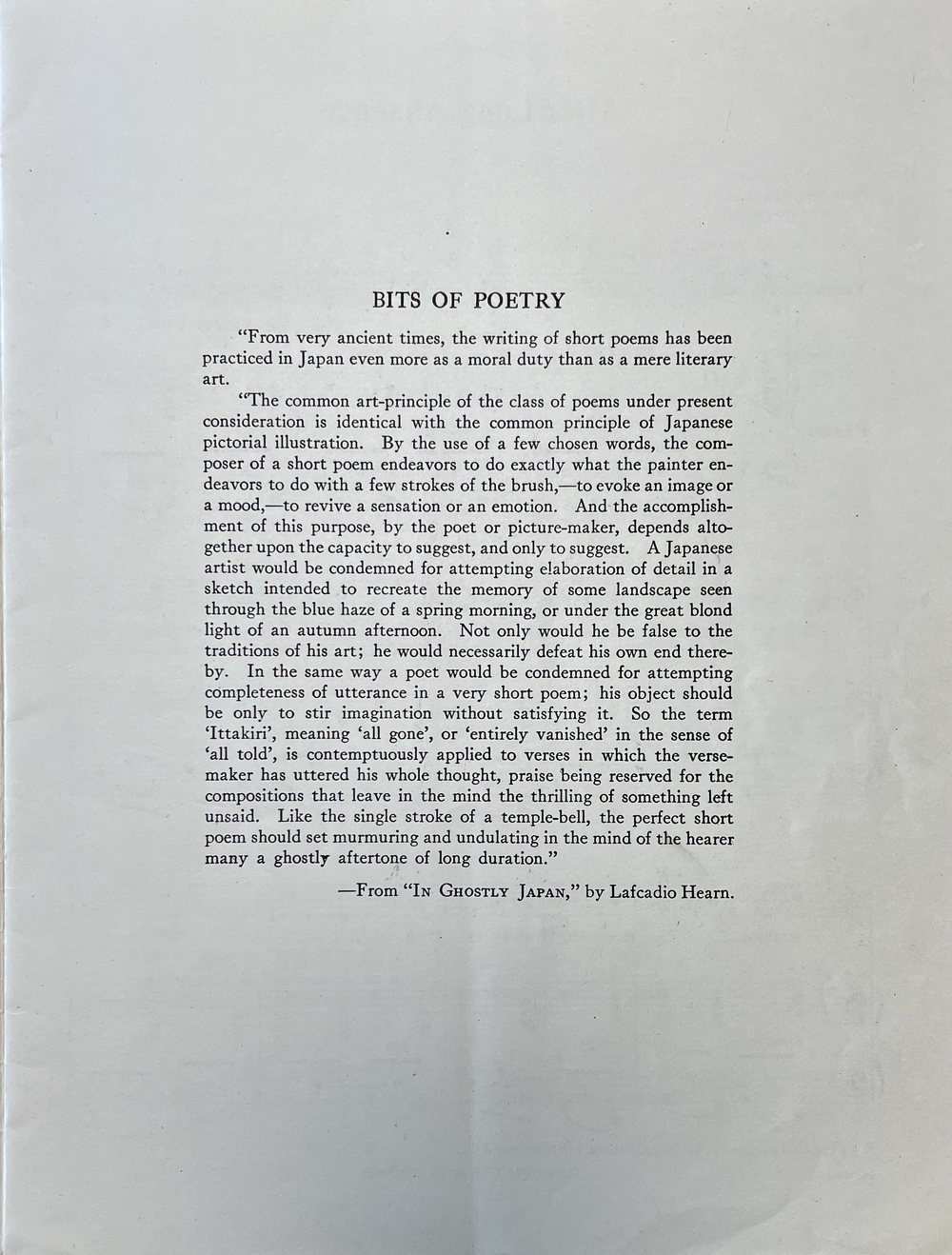 SHADOWINGS: FIVE POEMS. From the Japanese by LAFCADIO HEARN...