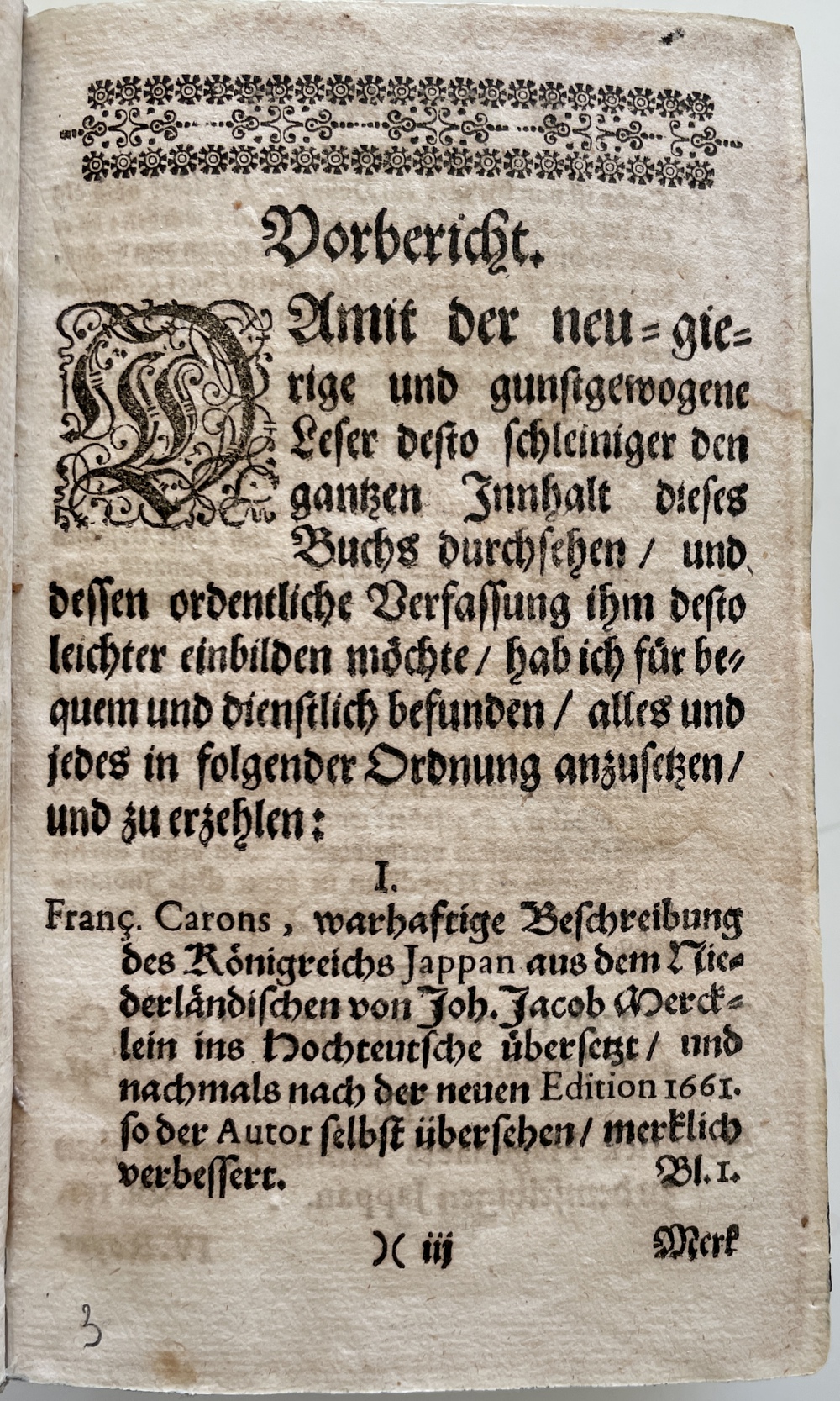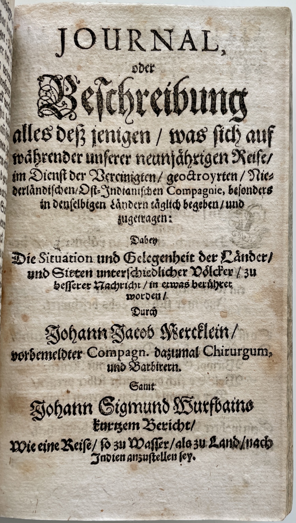 Wahrhaftige Beschreibungen zweyer mächtigen Königreiche JAPPAN und SIAM….Alles aus dem Niederländischen úbersetzt und mit Kupferblätern geiert, Denen noch beygefúget Johann Jacob Merckleins Ost=Indianische Reise…