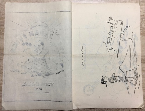 ワーグマン(Charles Wirgman, 1832 – 1891)による幕末期から明治初期の日本を描いた風俗雑誌「ジャパン・パンチ」は、1862年から1887年まで刊行されたあまりにも有名な雑誌です。日本の「ポンチ絵」の原型となったことや、優れた風刺画の歴史教科書への掲載でもよく知られる雑誌ですが、その刊行頻度や時期、それぞれの内容となると、復刻版の存在にもかかわらず依然として不明な点が多々あります。 1873年に刊行された号はいずれも刊行月の表記がなく、雄松堂による復刻版では、8月、9月、12月に刊行されたものと推定されており、この三号が収録されています。ところが、今回ご案内する本資料は、タイトルページには確かに「1873年」との表記があるものの、その収録されている内容は、復刻版に所収のいずれの号にも該当しないものです。本文中の記事にも年月を表すような記載はないことから、内容から推察して前後関係を特定するほかありませんが、これまで見つかっていない、あるいは存在していたものの、見落とされていた号である可能性が高いものと思われます。 刊行当時の和綴の装丁を保っていることから、単独の号としてのまとまりも特定することができる点も貴重な資料です。綴じ紐に緩みが見られますが、本文の状態は全体的に良好と言えるものです。