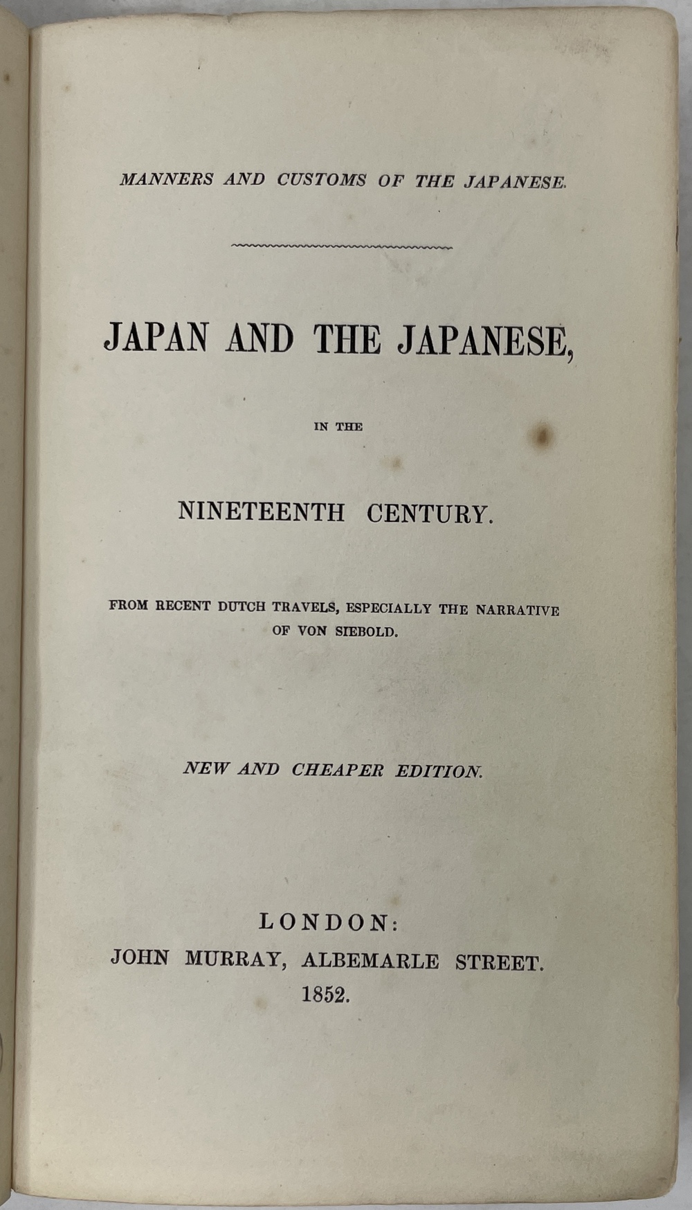 MANNERS AND CUSTOMS OF THE JAPANESE. JAPAN AND THE JAPANESE, IN THE NINETEENTH CENTURY. FROM RECENT DUTCH TRAVELS, ESPECIALLY THE NARRATIVE OF VON SIEBOLD.