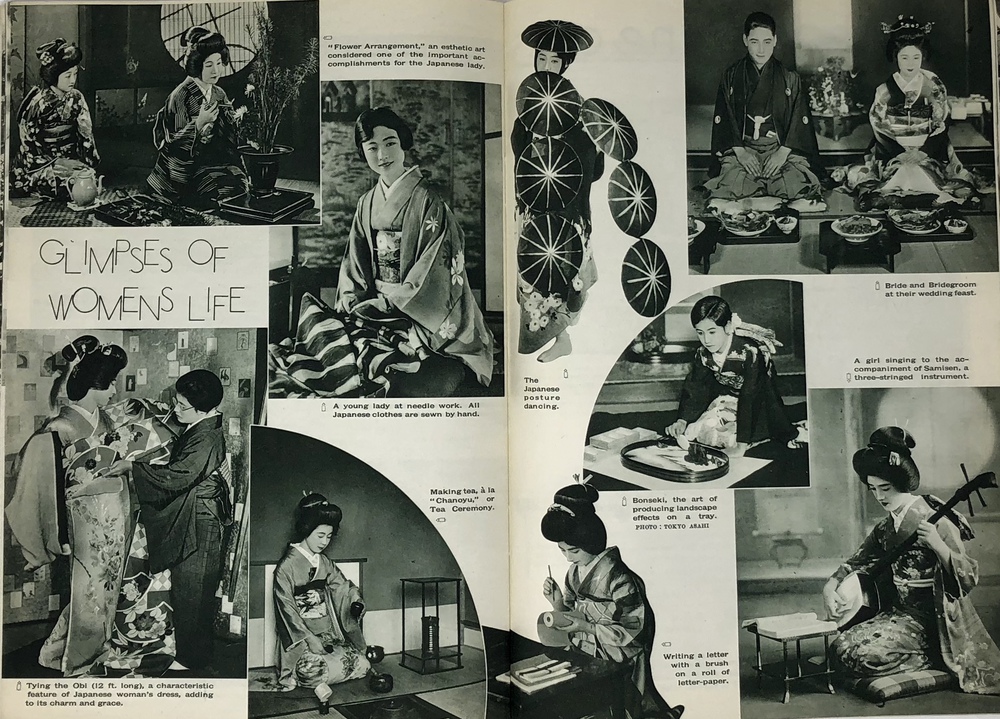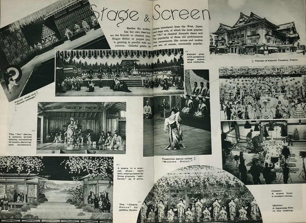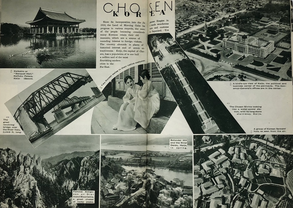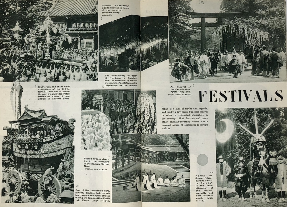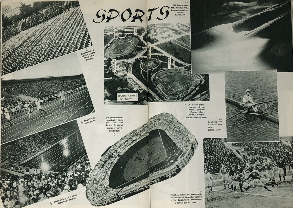 本書は、鉄道省などの歴代鉄道官庁が作成した英文ガイドブックのうちの一つで、シンプルにJAPANと題されています。同じタイトルを持つもっと小型のガイドブックも早くから刊行されていますが、本書は実際的な情報よりも日本への観光誘致を強く意識した写真を中心としたビジュアル誌として作成されているように思われます。 表紙の美しい日本画を作成した人物は残念ながら店主には不明ですが、裏面に落款があることから特定は可能でしょう。刊行年の記載はありませんが、おそらくテキストの内容から見て1933年ごろと思われます。 冒頭で紹介されるのは、日本を象徴する富士山で、見開きを使って様々な顔を見せる富士山の写真を6枚掲載しています。首都である大都市東京、四季の美しい日本の風景、祭り、京都や奈良の歴史的建造物や遺跡といった伝統的側面だけでなく、娯楽としての海水浴や競馬、スポーツも紹介されています。スポーツでは、ロサンゼルスオリンピック(1932年)で活躍し、欧米でも多くのファンがいた西竹一(通称バロン西、映画『硫黄島からの手紙』で伊原剛志が演じた)の雄姿や、嘉納治五郎の尽力によって国際的な認知を高めつつあった柔道、テニスやレガッタ、アイススケートなどの写真があります。また能や歌舞伎といった伝統舞台芸術とともに映画撮影の様子を紹介した写真もあります。 また、ジャポニズムブーム以来海外で定着した感のある、美しい「日本女性」を紹介する写真とテキストも見られます。伝統的な側面と合わせて、最新の工業設備も写真で紹介しており、伝統と最新技術とを併せ持つ魅力的な国としての日本を演出しようという明確な意図が伺えます。植民地としてた朝鮮や台湾、満州も本書では紹介されており、当時の日本が海外に見せたかった像としての日本像が、このガイドブックには凝縮して詰められていると言えるでしょう。