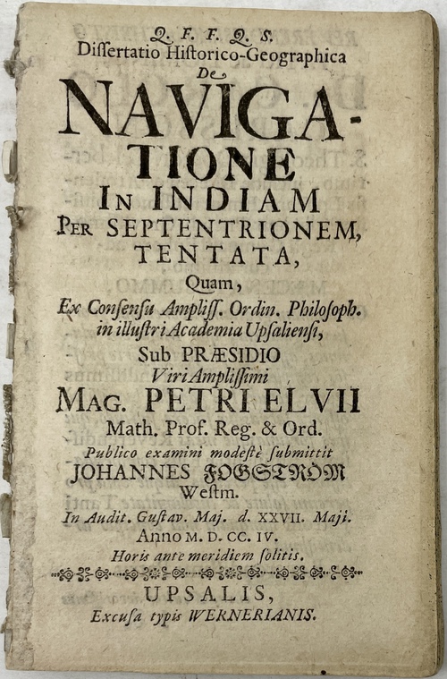 Dissertatio Historico-Geographica De NAVIGATIONE IN INDIAM PER SEPTENTRIONEM, TENTATA,…