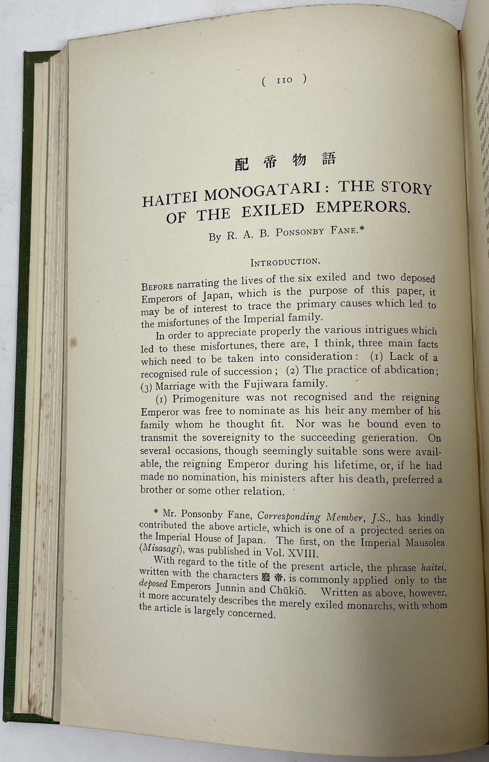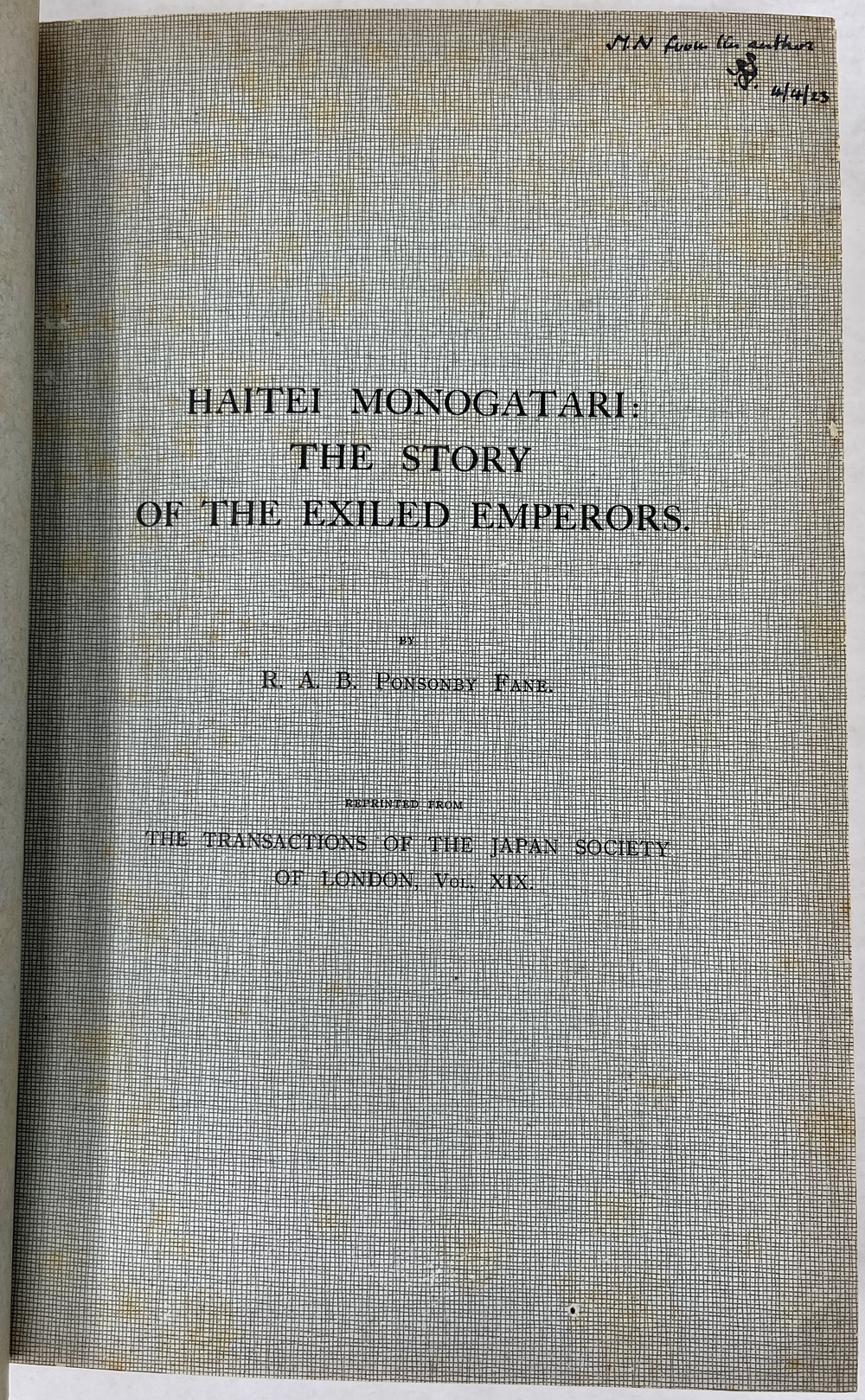 2. 「『配帝物語:亡命皇帝たちの物語』」HAITEI MONOGATARI: THE STORY OF THE EXILED EMPERORS. (TJSL, Vol. XIX)著者献辞あり。