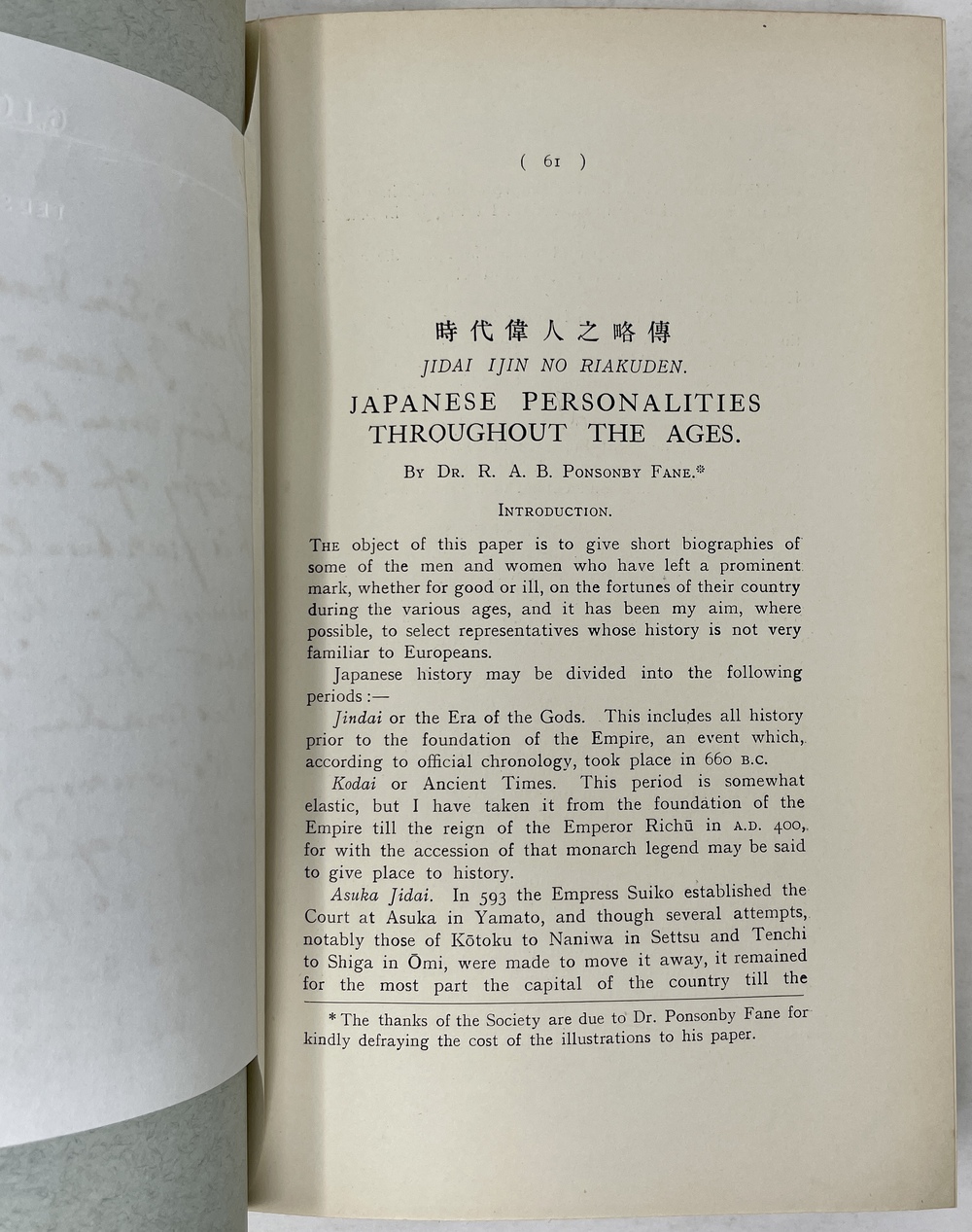 12. 「時代偉人の略伝」JIDAI IJIN NO RIAKUDEN. JAPANESE PERSONALITIES THROUGHOUT THE AGES. (TSJL, Vol. XXIX) 著者手紙付き。