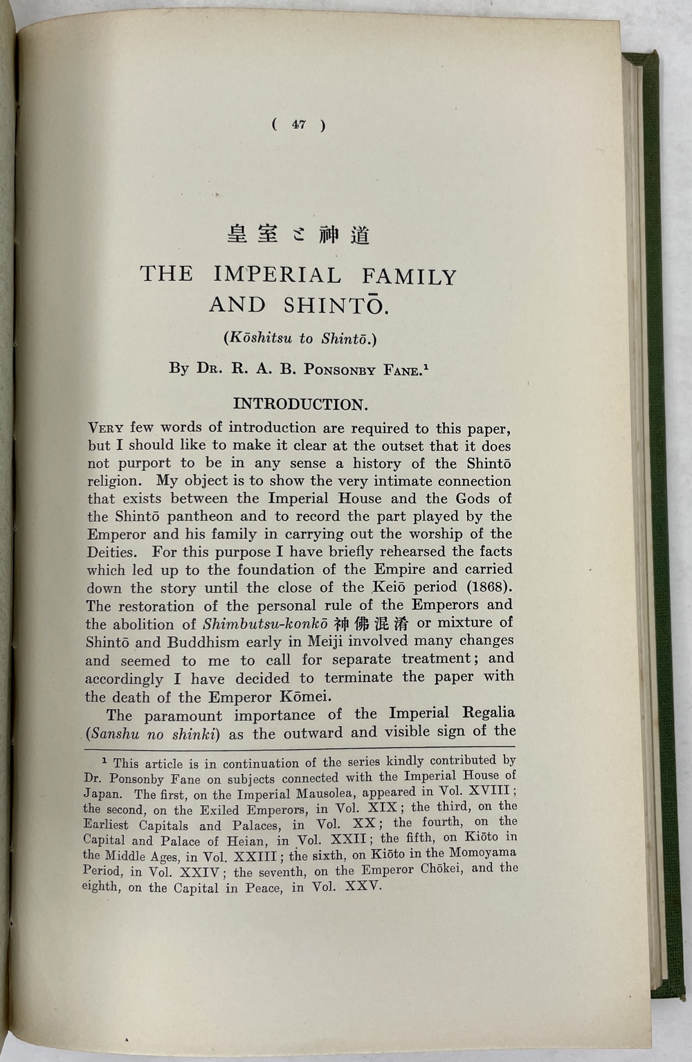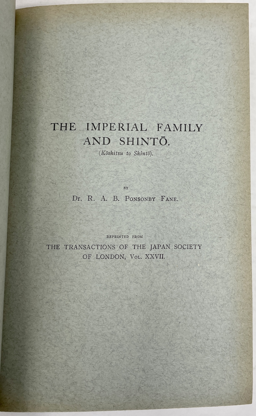 10. 「皇室と神道」THE IMPERIAL FAMILY AND SHINTO (Koshitsu to Shinto). (TSJL, Vol. XXVII)