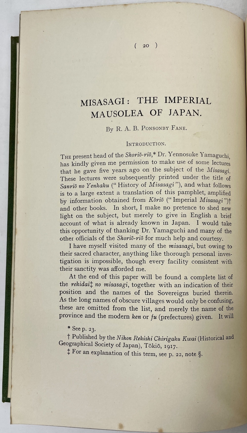 1. 「日本の皇室の霊廟(古墳)」MISASAGI: THE IMPERIAL MAUSOLEA OF JAPAN. (TJSL, Vol. XVIII)著者献辞あり。