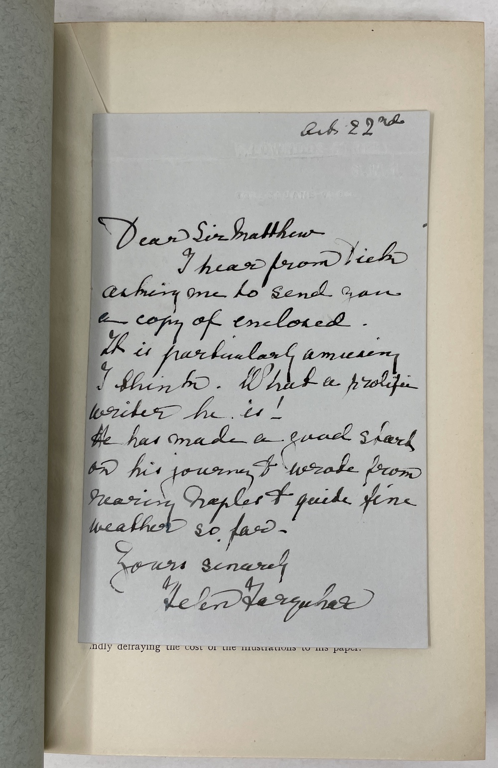 本書は、彼が『ロンドン日本協会紀要』に掲載した16本の論文の抜刷りを3冊に製本してまとめたものです。見返しに貼られている蔵書票から、この3冊の書物の旧蔵者が、1903年から1907年にかけて香港総督を務めていたイギリス人で、ポンソンビー=フェインの香港総督秘書時代の上司であったネイサン(Matthew Nathan, 1862 - 1939)であったことがわかります。ポンソンビー=フェインは、ネイサンに自身の著作を定期的に送っていたようで、本書に収録されている作品の多くにポンソンビー=フェイン直筆の献辞が記されています。