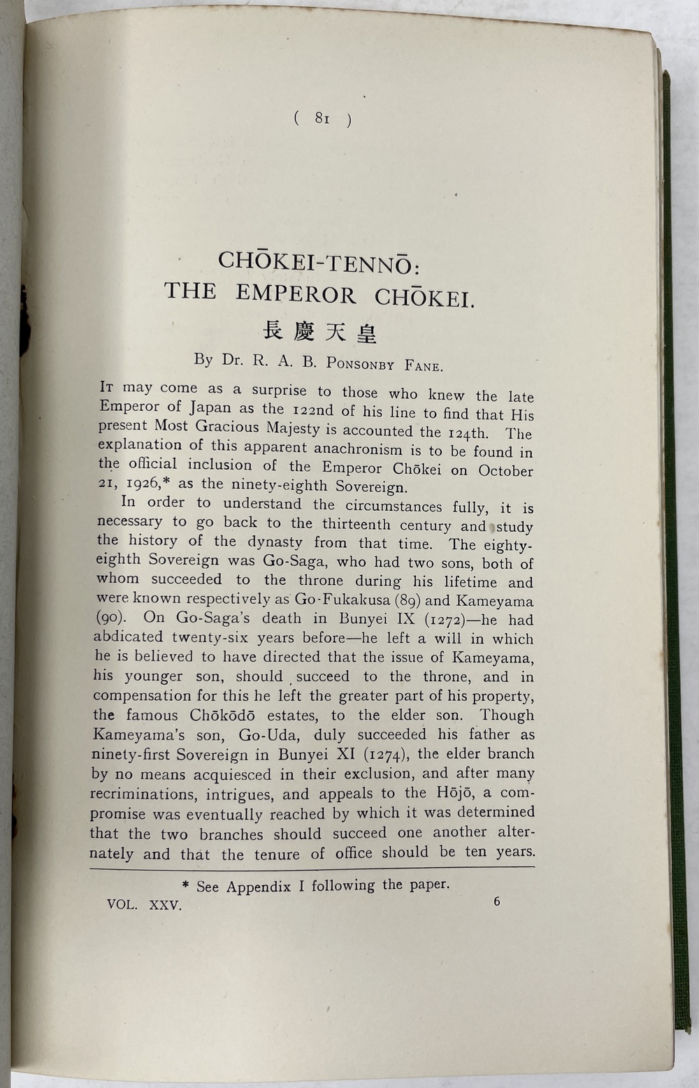 7. 「長慶天皇」CHOKEI-TENNO: THE EMPEROR CHOKEI. (TJSL, Vol. XXV) 京都外大所蔵