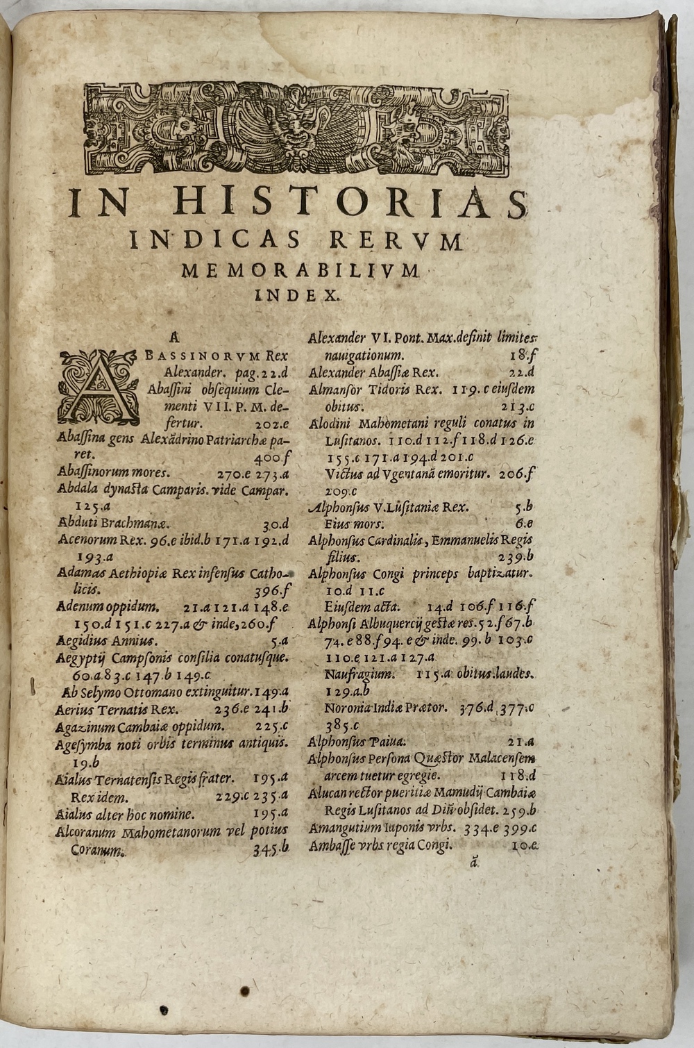 HISTORIARVM INDICARVM LIBRI XVI. SELECTARVM ITEM EX INDIA Epistolarum eodem interprete Libri III. ACCESSIT IGNATII LOIOLÆ VITA postremo recognita. Et in opera singula copiosus Index.