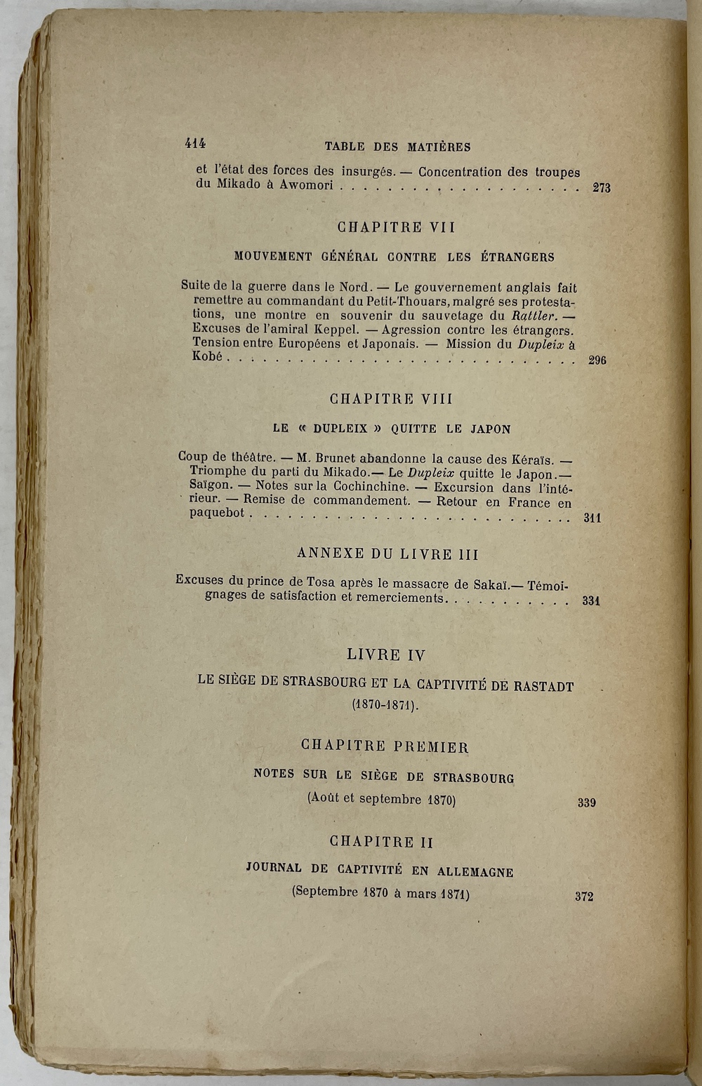 Half Title., Front., Title., pp.[I], II-VI, 1 leaf(chart), pp.[1-3], 4-126, [127, 128], double pages map(of Japan), pp.129-415,