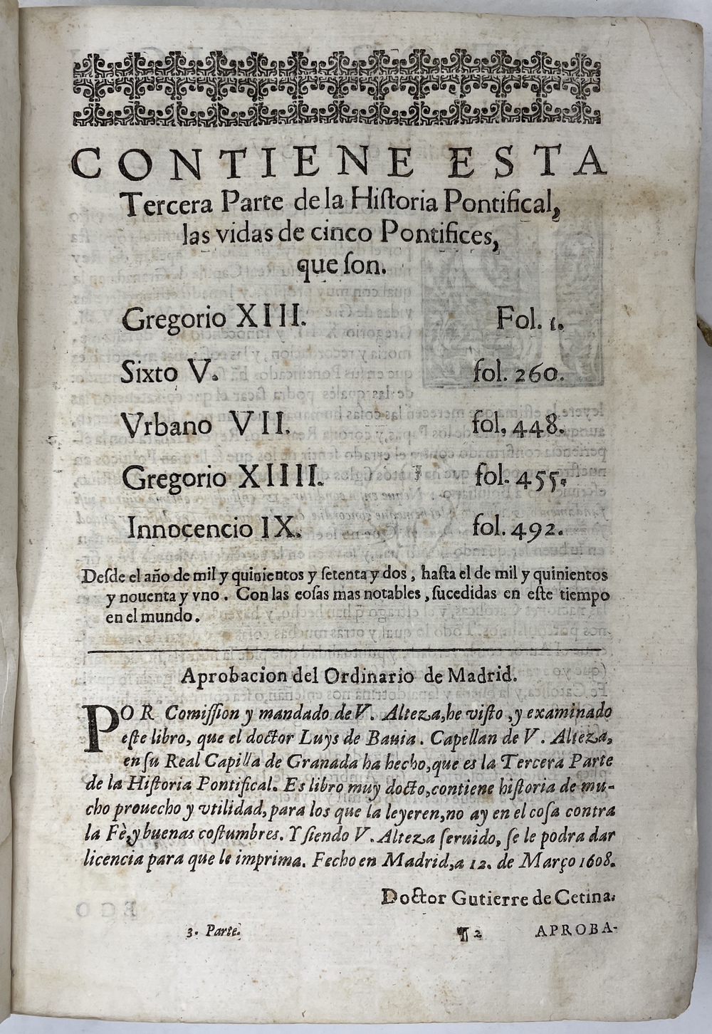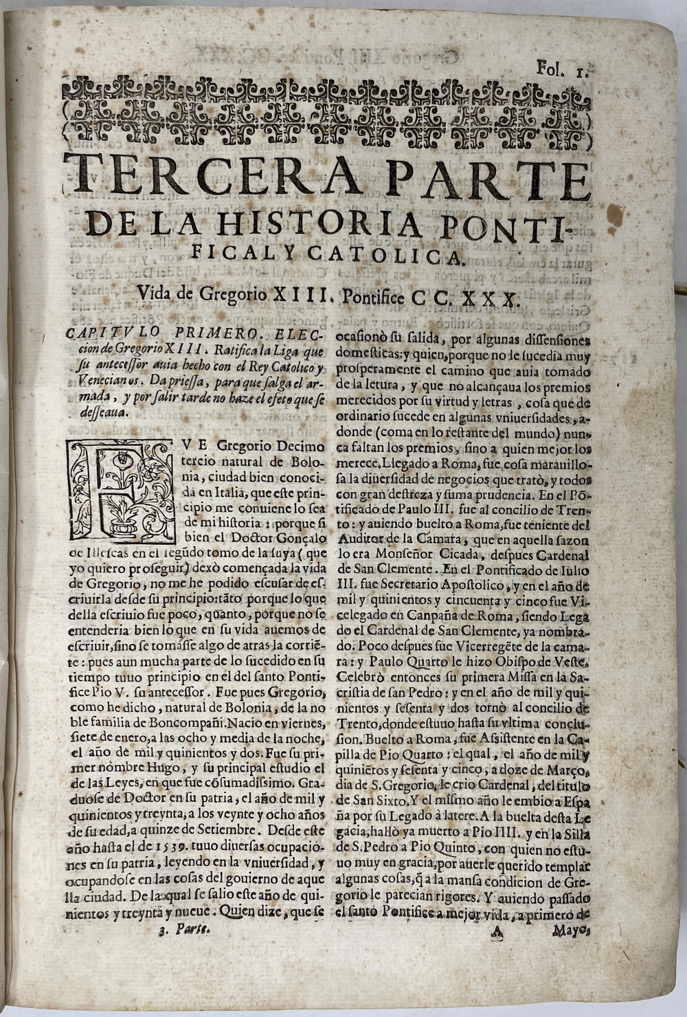 TERCERA PARTE DE LA HISTORIA PONTIFICAL Y CATOLICA…CONTIENE ESTA TERCERA PARTE DE LA Historia Pontifical, las cosas mas notables sucedidas en el mundo, desde el año de mil y quinientos y setenta y dos, hasta el de mil y quinientos y nouenta y vno….