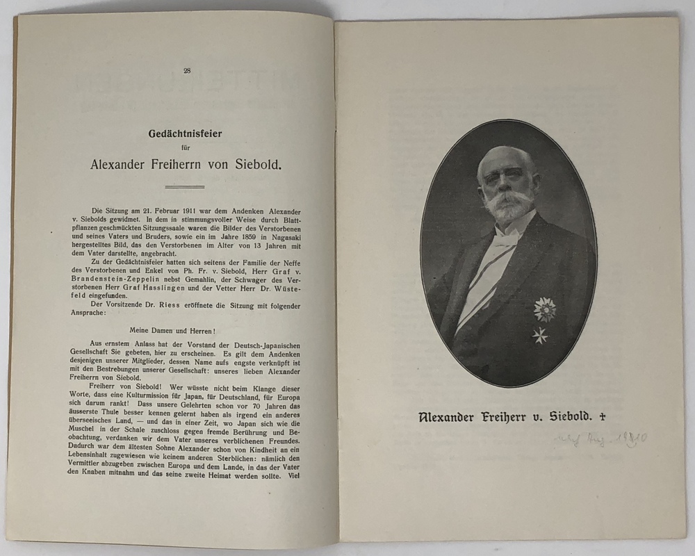 pp.28-42. with portrait of Alexander Freiherr v. Siebold,