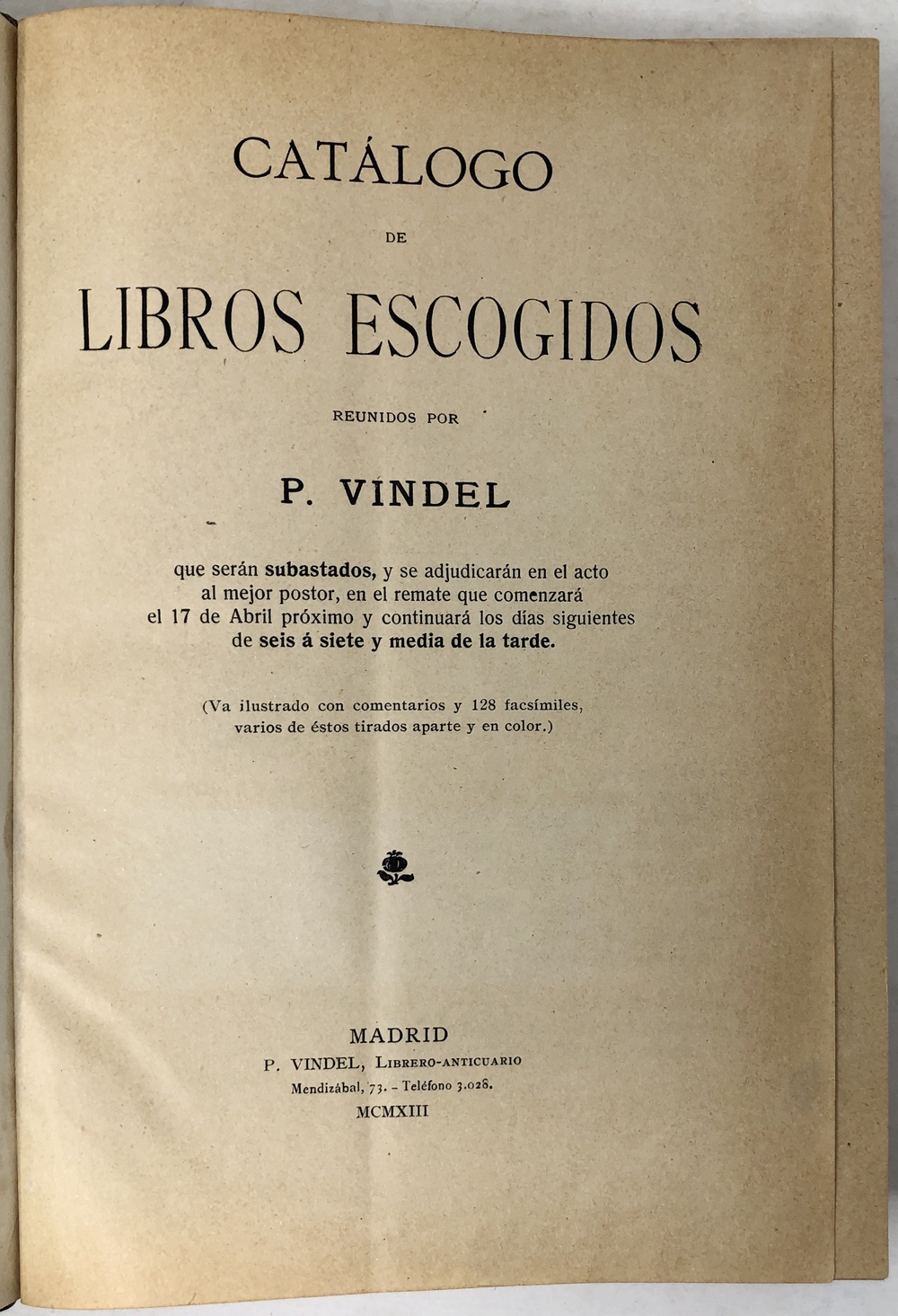 CATÁLOGO DE LIBROS ESCOGIDOS…(Va ilustrado con comentarios y 128 facsímiles, varios de éstos tirados aparte y en color.) [bound with], LISTA DE PRECIOS Y NOMBRES DE COMPRADORES.