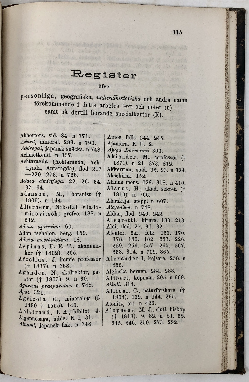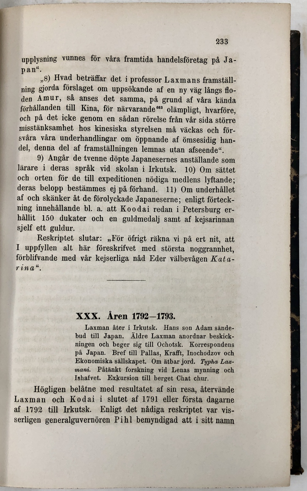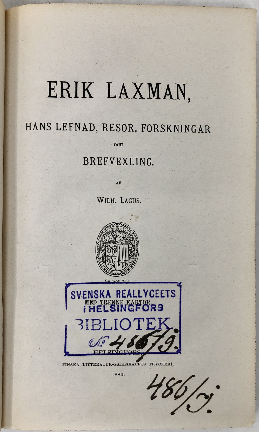 『エリク(キリル)・ラクスマン:その生涯と航海、調査と書簡集』(フィンランド自然協会による「フィンランドの自然と人々に関する知識への寄与叢書第34巻)