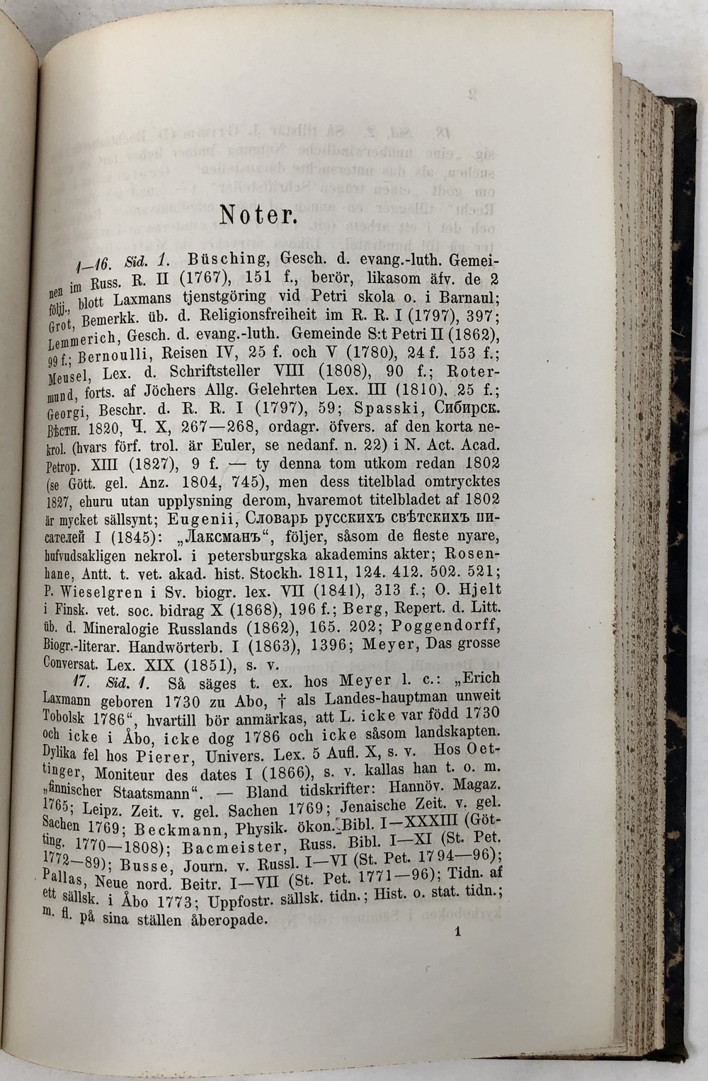 ERIK LAXMAN, HANS LEFNAD, RESOR, FORSKINGAR OCH BREFVEXLING.
