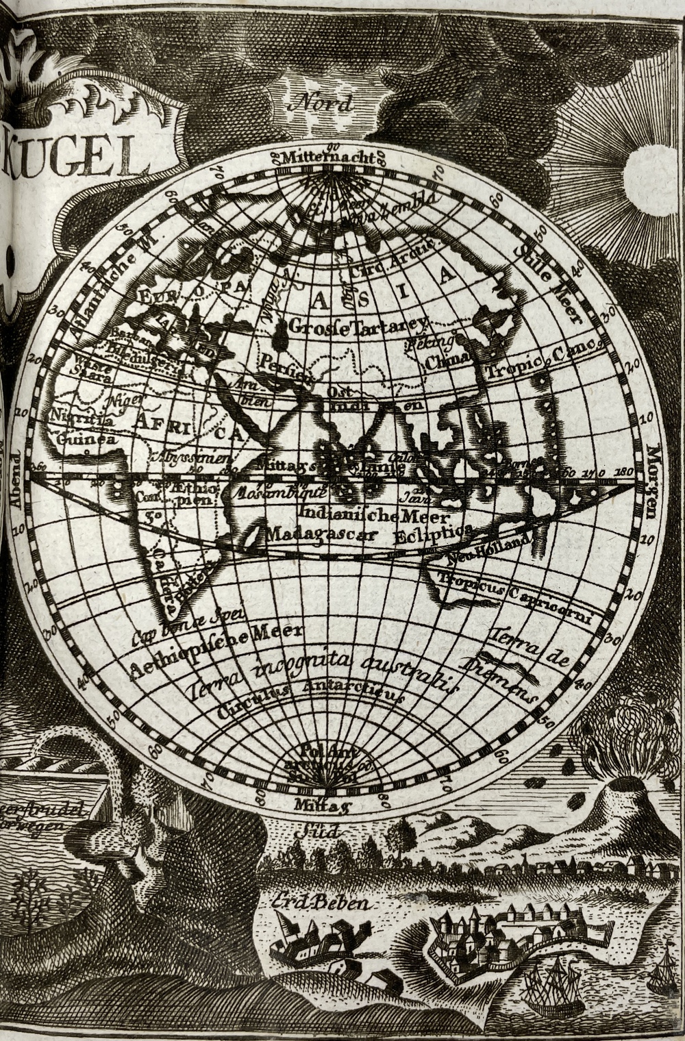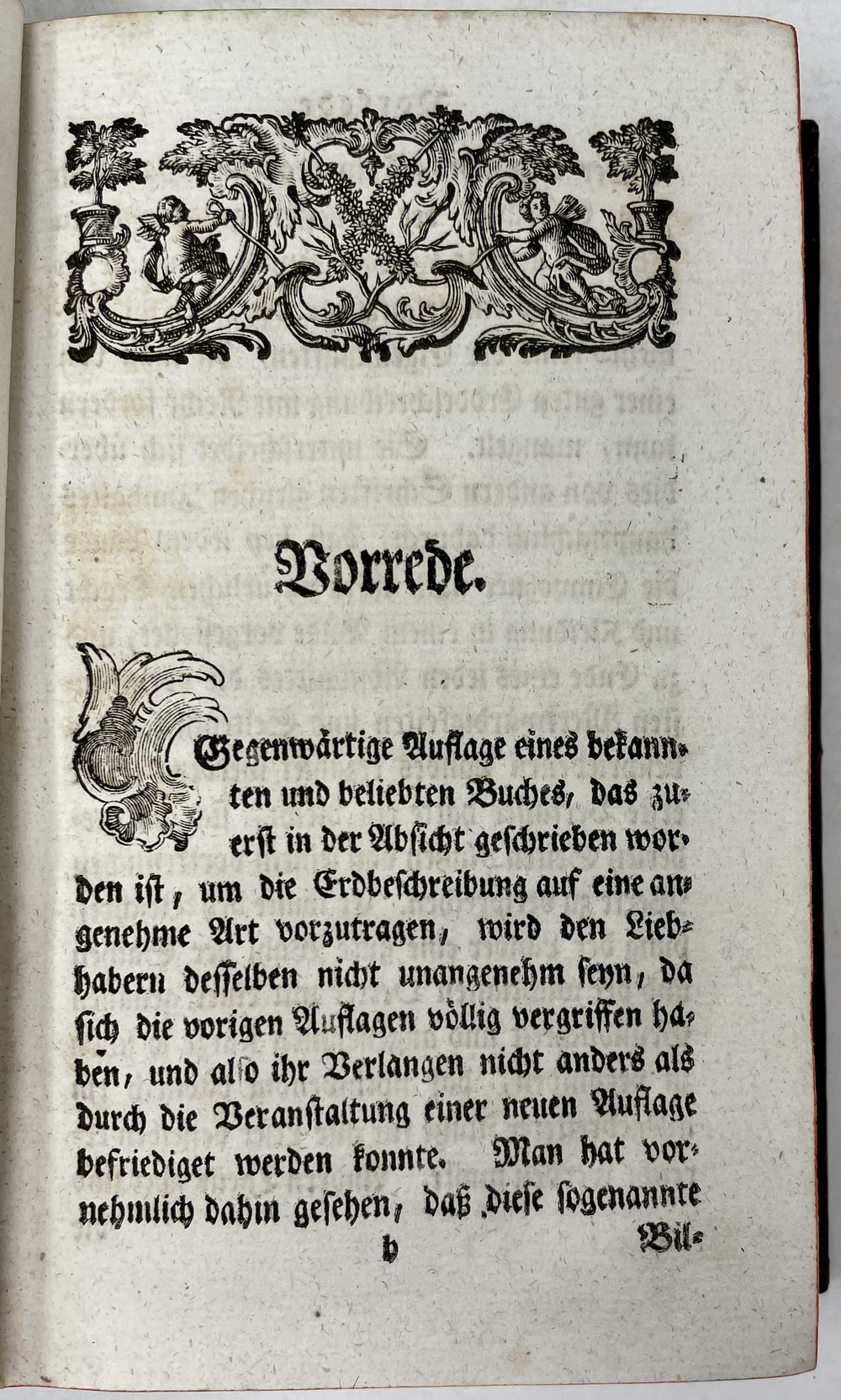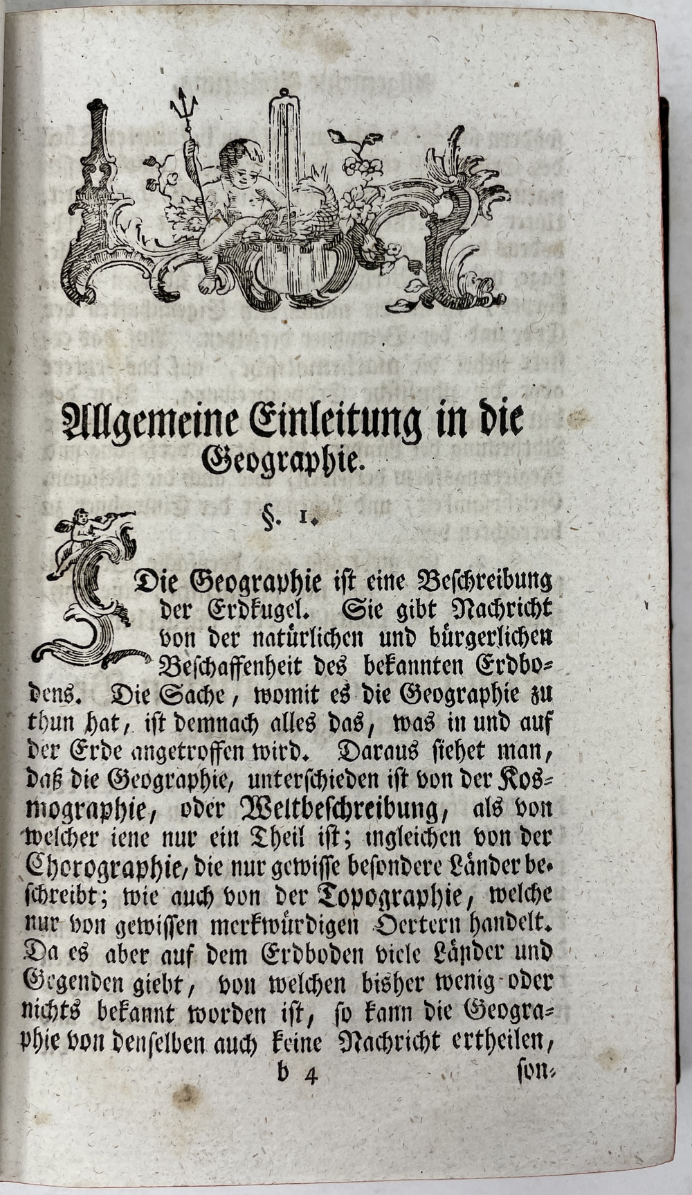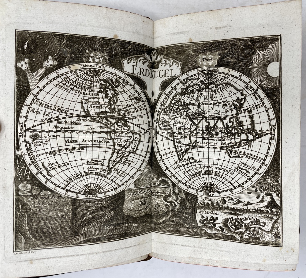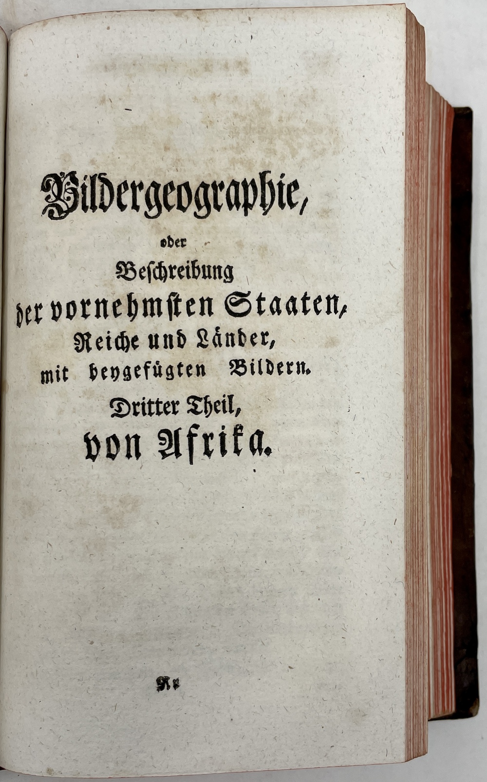 Nach dem jezigen Staat eingerichtete Bilder=Geographie, darinnen von den vier haupttheilen des Erdbodens Europa, Asia, Afrika und Amerika Nachricht gegeben, alle Nationen nach ihrer Kleidung in saubern Figuren vorgestellet,...