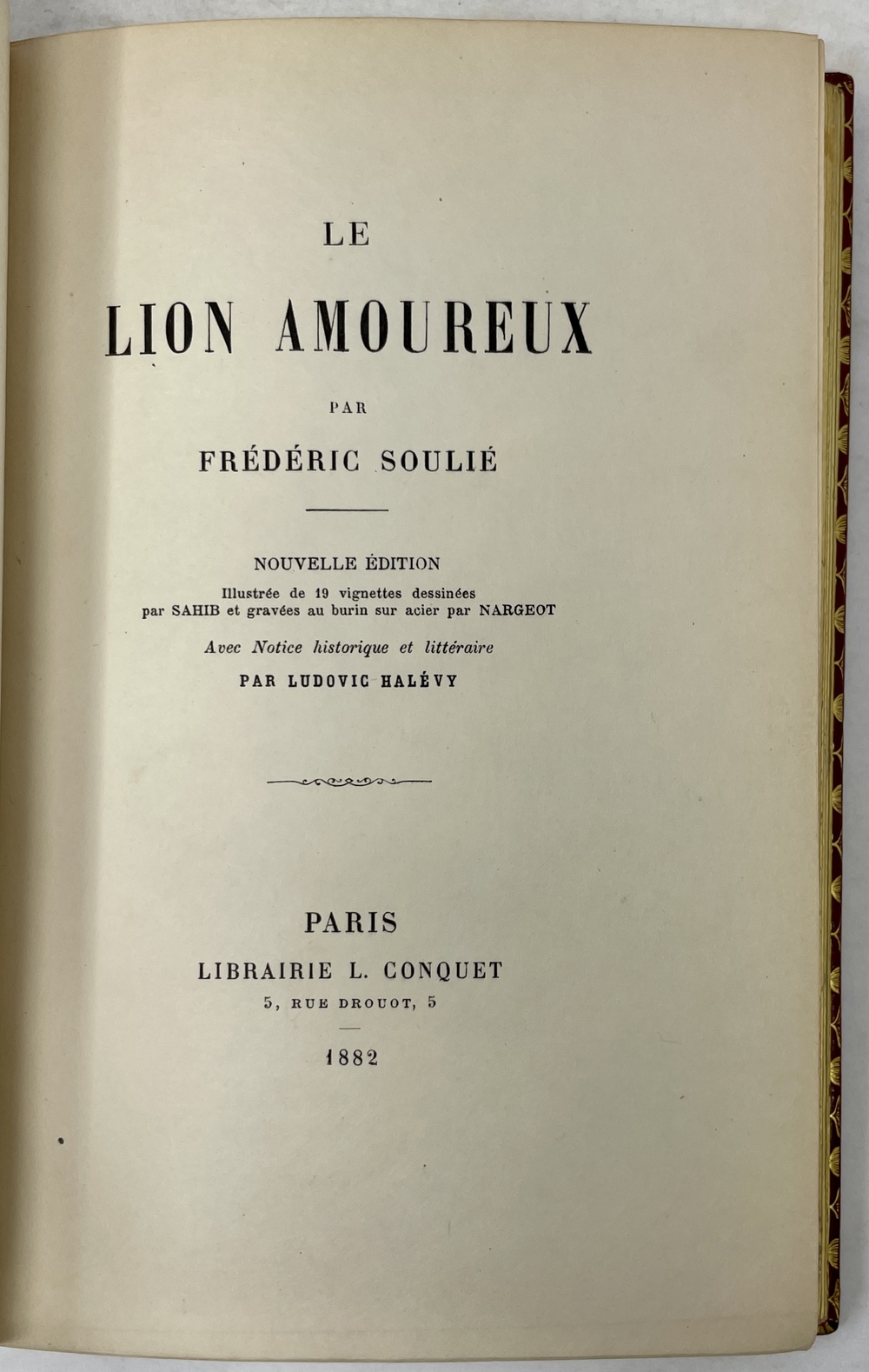 LE LION AMOUREUX…NOUVELLE ÉDITION. Illustrée de 19 vignettes dessinées par SAHIB et gravées au burin sur acier par NARGEOT. Avec Notice historique et littéraire PAR LUDOVIC HALÉVY.