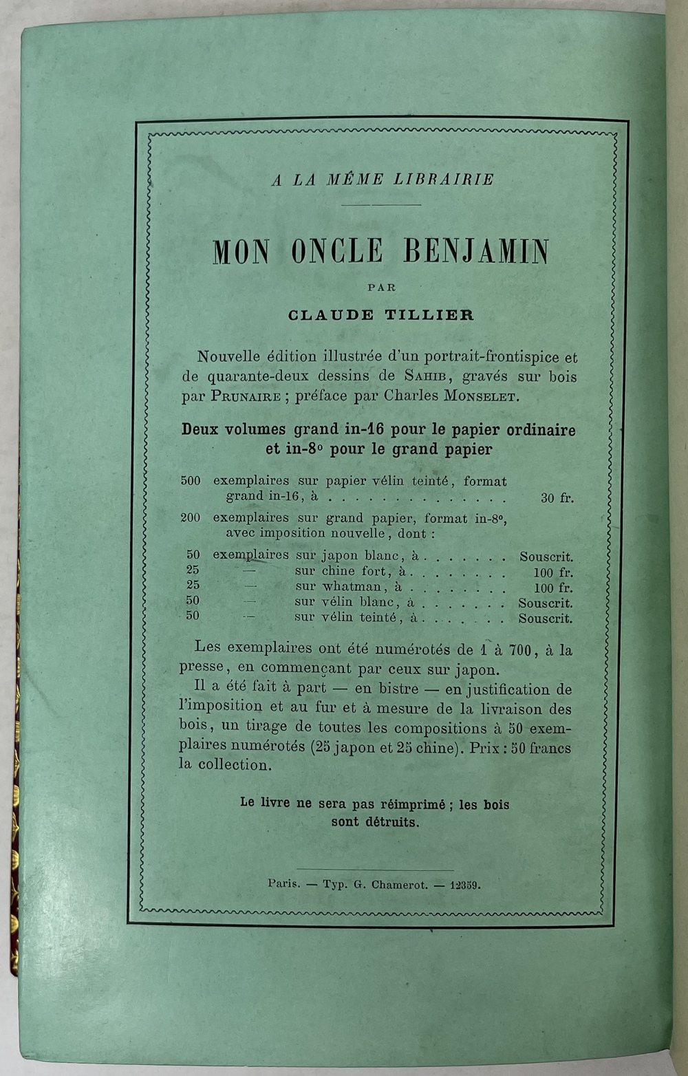 新装150部限定版 コルディエ旧蔵書(ラパルリエ装丁)著者直筆書簡挿入 1882年 パリ刊