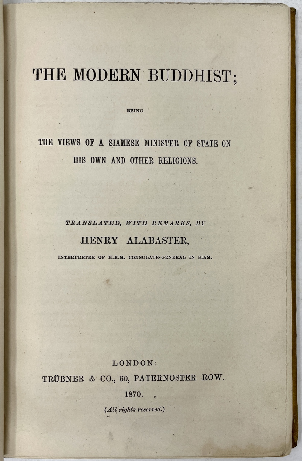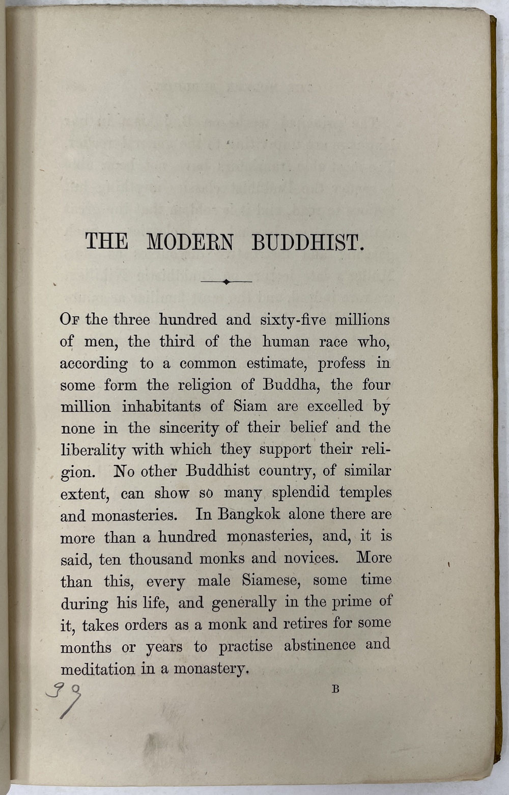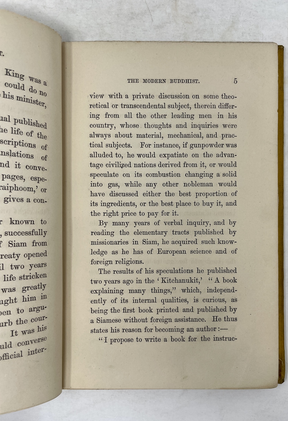 THE MODERN BUDDHUST; BEING THE VIEWS OF A SIAMESE MINISTER OF STATE ON HIS OWN AND OTHER RELIGIONS.