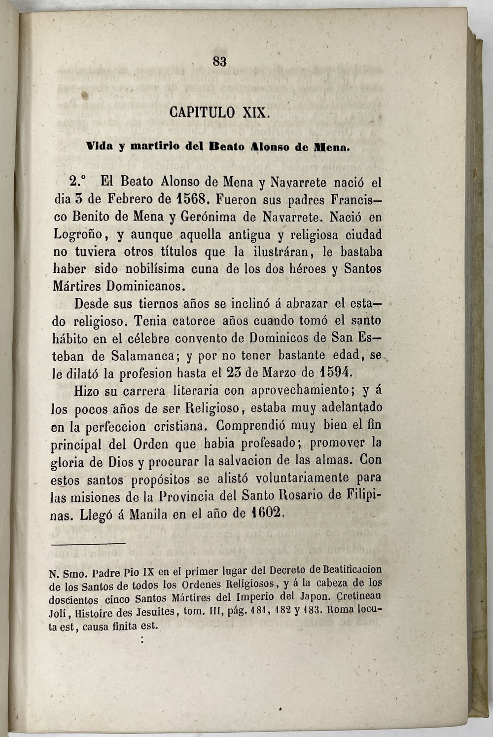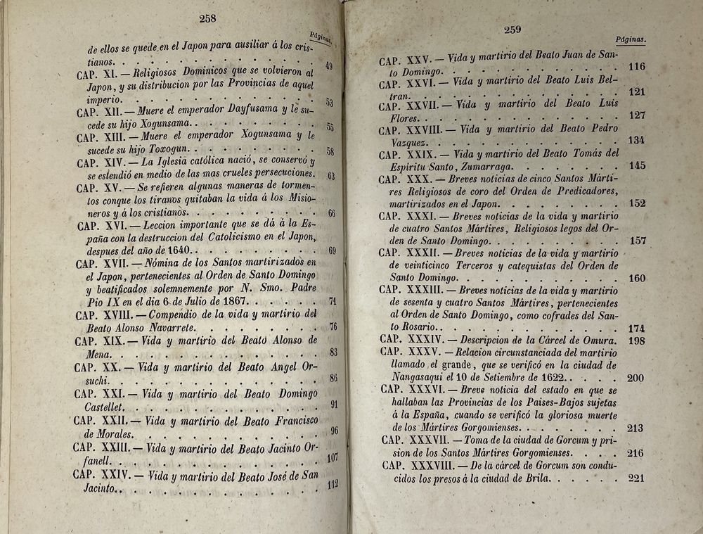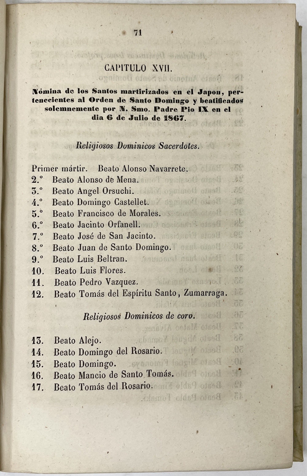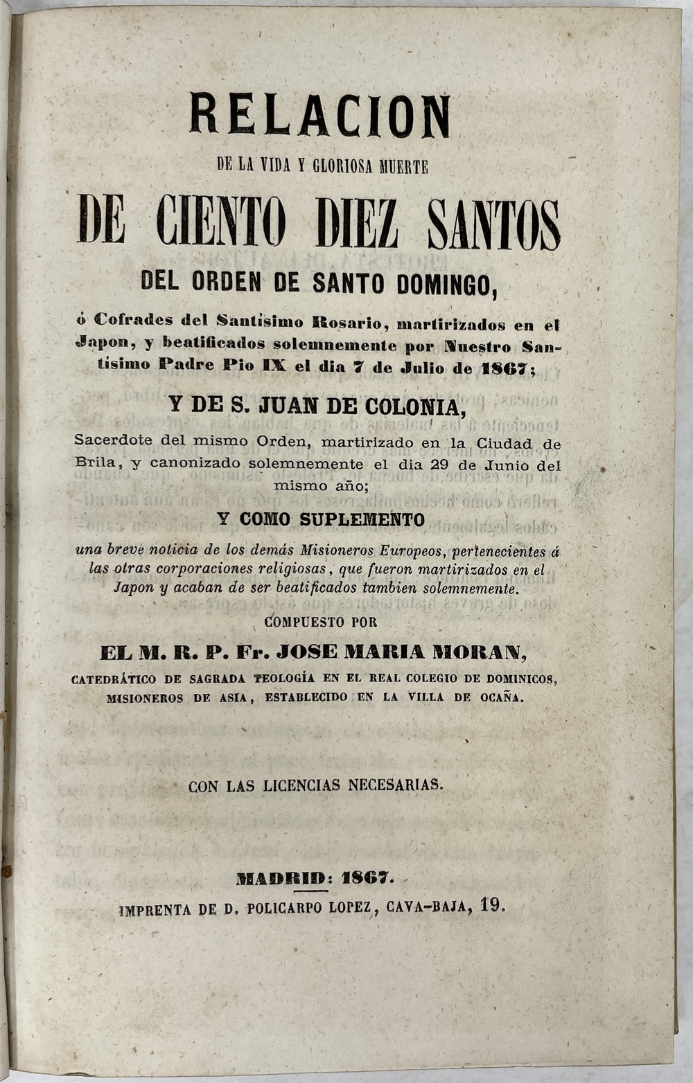 RELACION DE LA VIDA Y GLORIOSA MUERTE DE CIENTO DIEZ SANTOS DEL ORDEN DE Santo Domingo, ó Cofrades del Santisimo Rosario, martirizados en el Japon, y beatificados solemnemente por Nuestro Santisimo Padre Pio IX el dia 7 de Julio de 1867;…