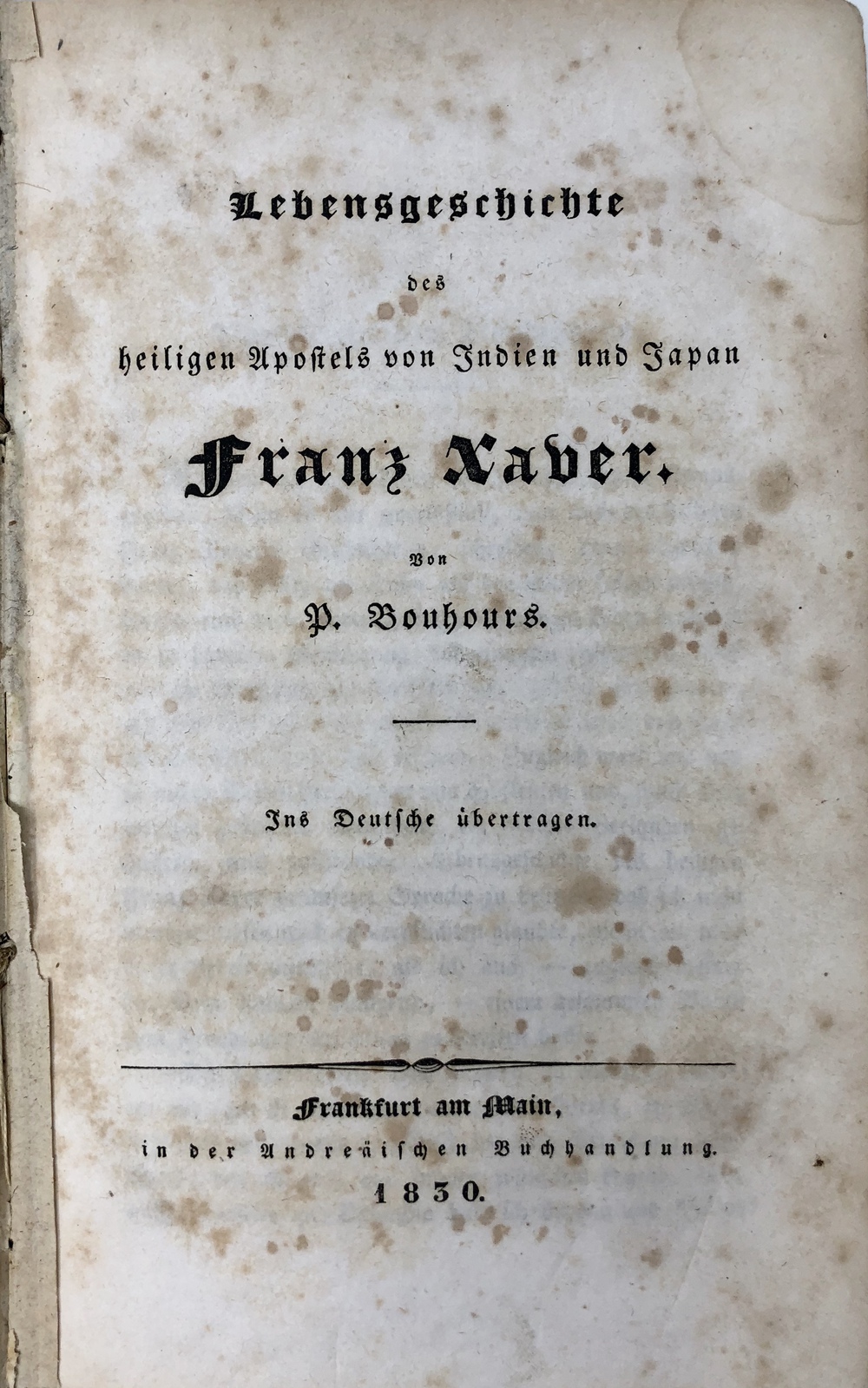Lebensgeschichte des heiligen Apostels von Indien und Japan Franz Xavier von D. Bouhours. Ins Deutsche übertragen.
