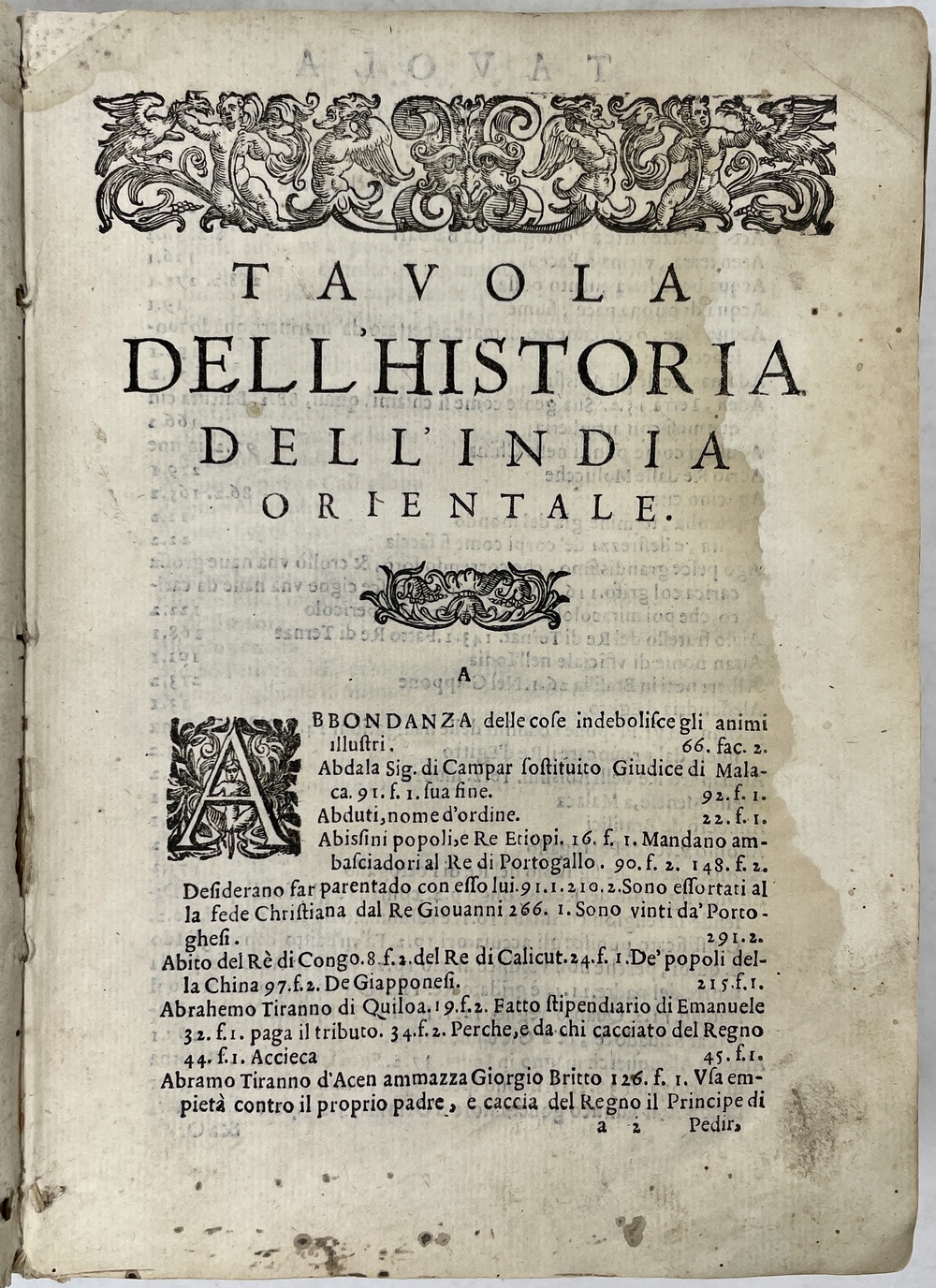 LE HISTORIE DELLE INDIE ORIENTALI; …TRADOTTE DI LATINO IN LINGVA Toscana, da M. FRANCESCO Serdonati Fiorentino. CON VNA SCIELTA DI LETTERE SCRITTE delle Indie,…