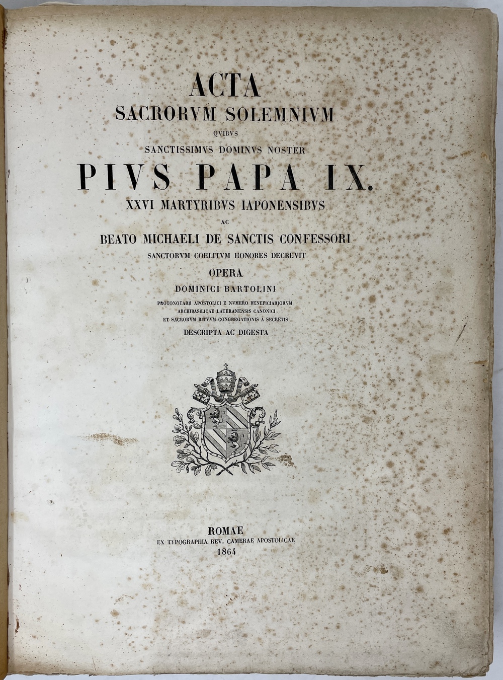 ACTA SACRORVM SOLEMNIVM QVIBVS SANCTISSIMVS DOMINVS NOSTER PIVS PAPA IX. XXVI MARTYRIBVS IAPONENSIBVS…