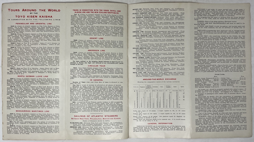 TOYO KISEN-KAISHA. America, Hawaiian Islands, India, Philippines, Japan, China.