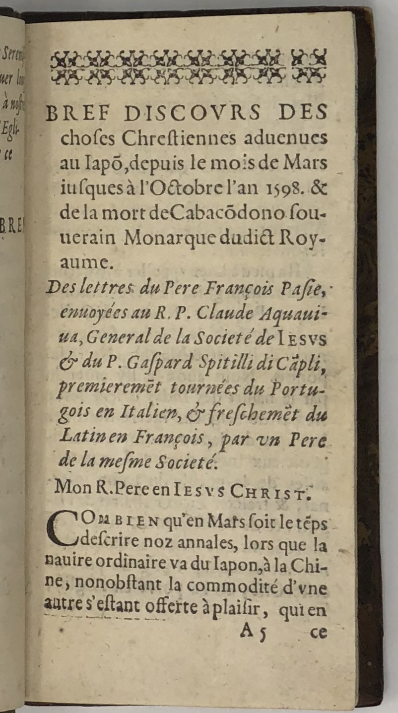 LES ANNALES DV IAPON, DELA CHI-NE, ET DE MOGOR. C'est à dire, les choses faictes en ces nations, par les Peres de la Sosieté de IESVS, l'an 1598. & 99.