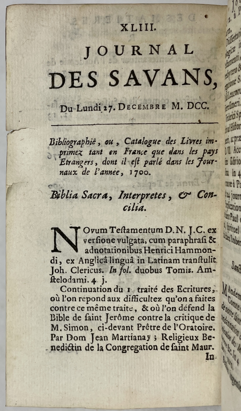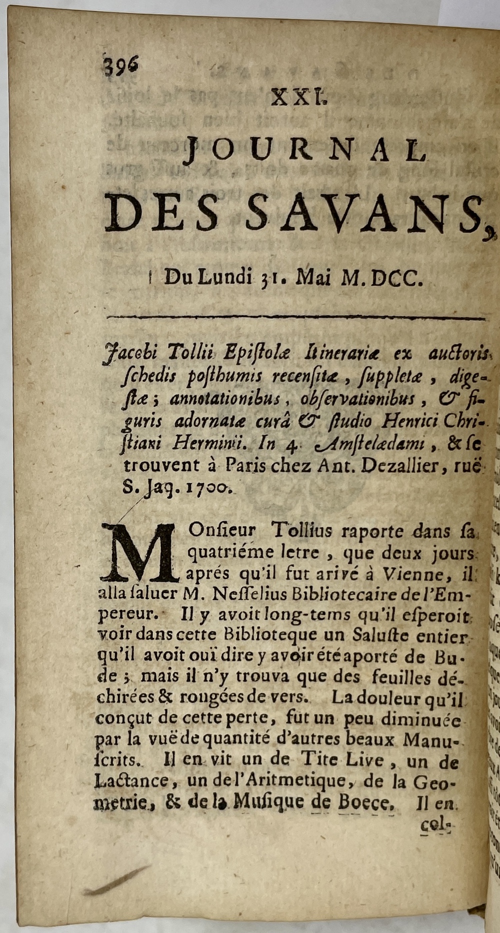 (雑誌『ジュルナル・デ・サヴァン』1700年(5月31日)第28号所収論文) 1701年 アムステルダム刊