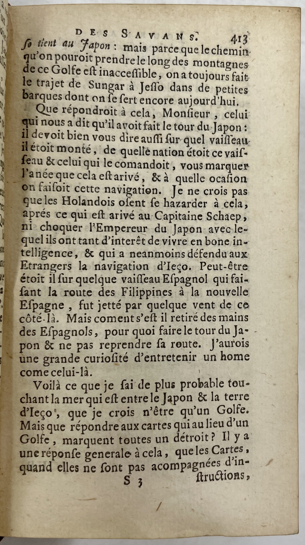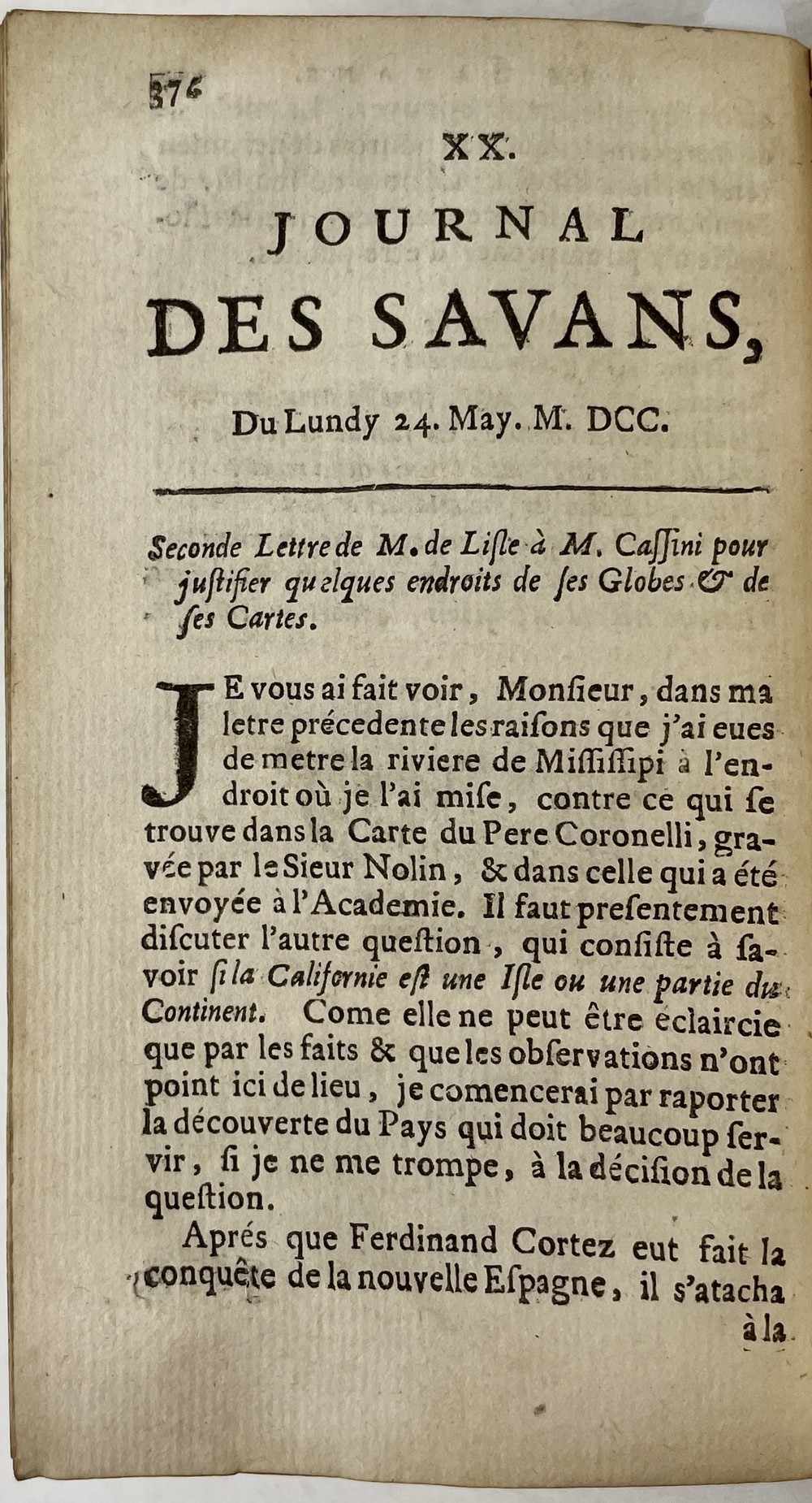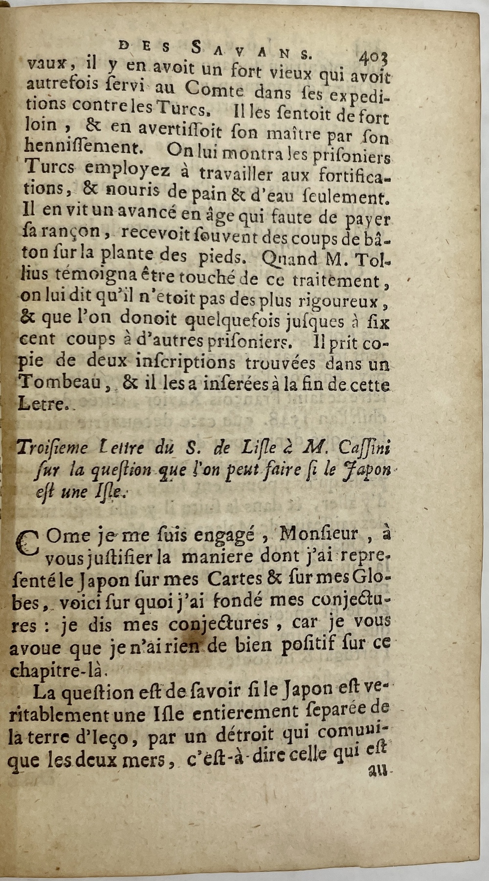 Troisieme Lettre du S. De Lisle à M. Cassini sur la question que l’on peut faire si le Japon est une Isle. [IN] JOURNAL DES SAVANS, POUR L’Année M.DCC. TOME VINGT ET HUITIE’ME.