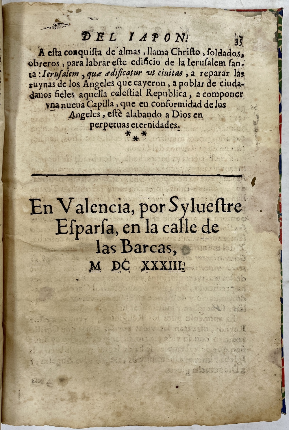 全体に染み、焼けが見られるがそれなりの応急処置が施されており、判読に支障のない状態。[Iberian books. Vol.2: 19959]