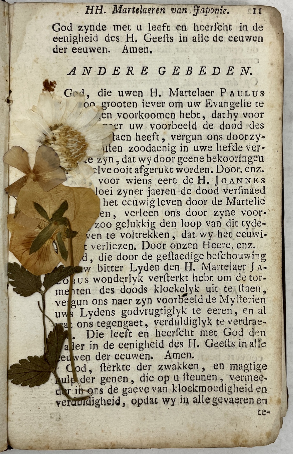 本体の綴じと裏表両面の表紙が外れかかっている状態。冒頭の口絵が欠落しているがテキストは完備。旧蔵者によるものと思われる押し花が随所に挟み込まれている。