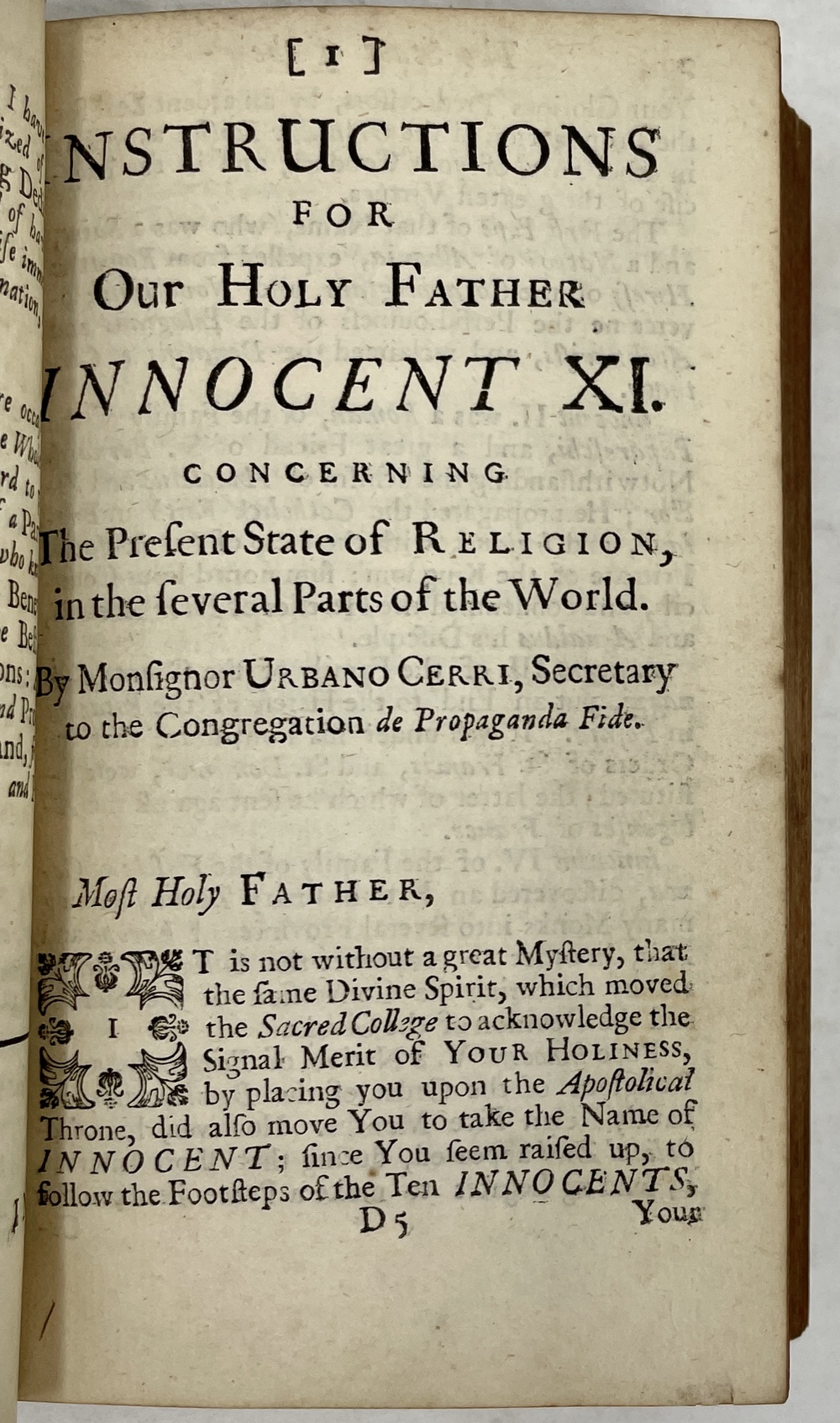 AN ACCOUNT Of the STATE of the Roman-Catholick RELIGION Throughout the WORLD. Written for the Use of POPE INNOCENT XI. By Monsieur Cerri,…Now first translated from Authentick Italian MS. never Publish’d….