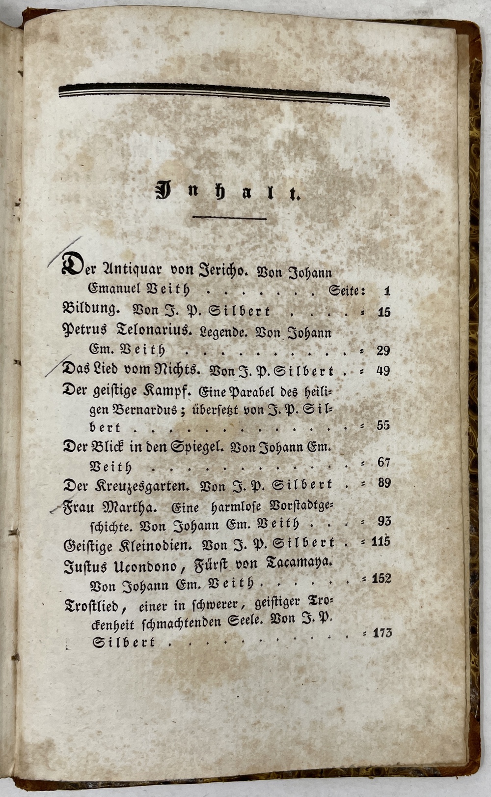 Half Title. Title., pp.[1], 2-, 18, [LACKING pp.19 & 20], pp.21, 22, 21, 22[i.e. DUPLICATED], pp.23, 24, 23, 24[i.e. DUPLICATED], [LACKING pp.25 & 26], pp.27-246, 1 leaf(Inhalt),