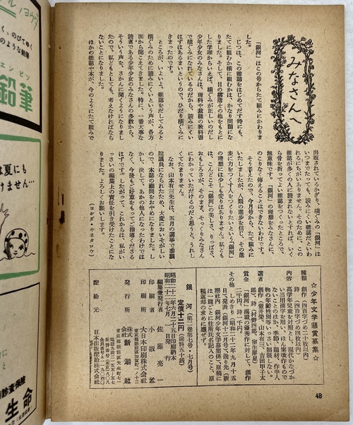 『銀河:少年少女雑誌』創刊号(第1巻第1号)