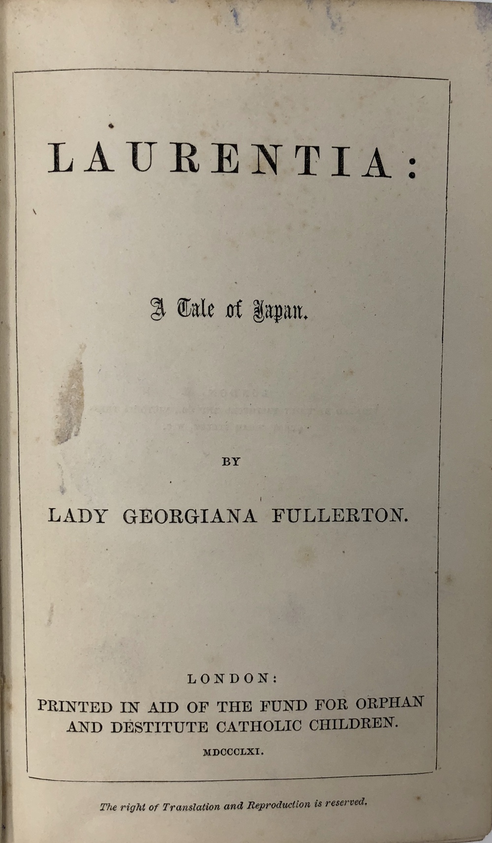 PRINTED IN AID OF THE FUND FOR ORPHAN AND DESTITUTE CATHOLIC CHILDREN. / PRINTED BY EMILY FAITHFULL AND CO., VICTORIA PRESS,
