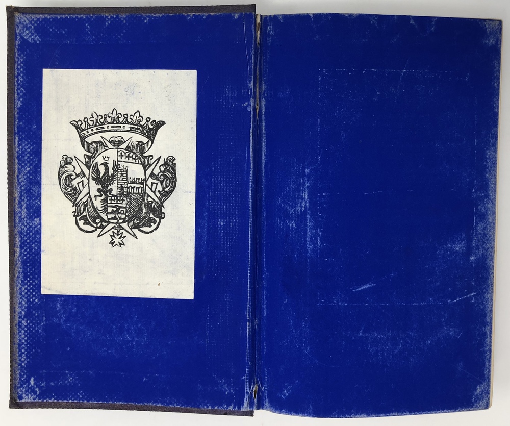 見返し部分に旧蔵者による蔵書票と装丁に合わせた青いインクによる着色あり。