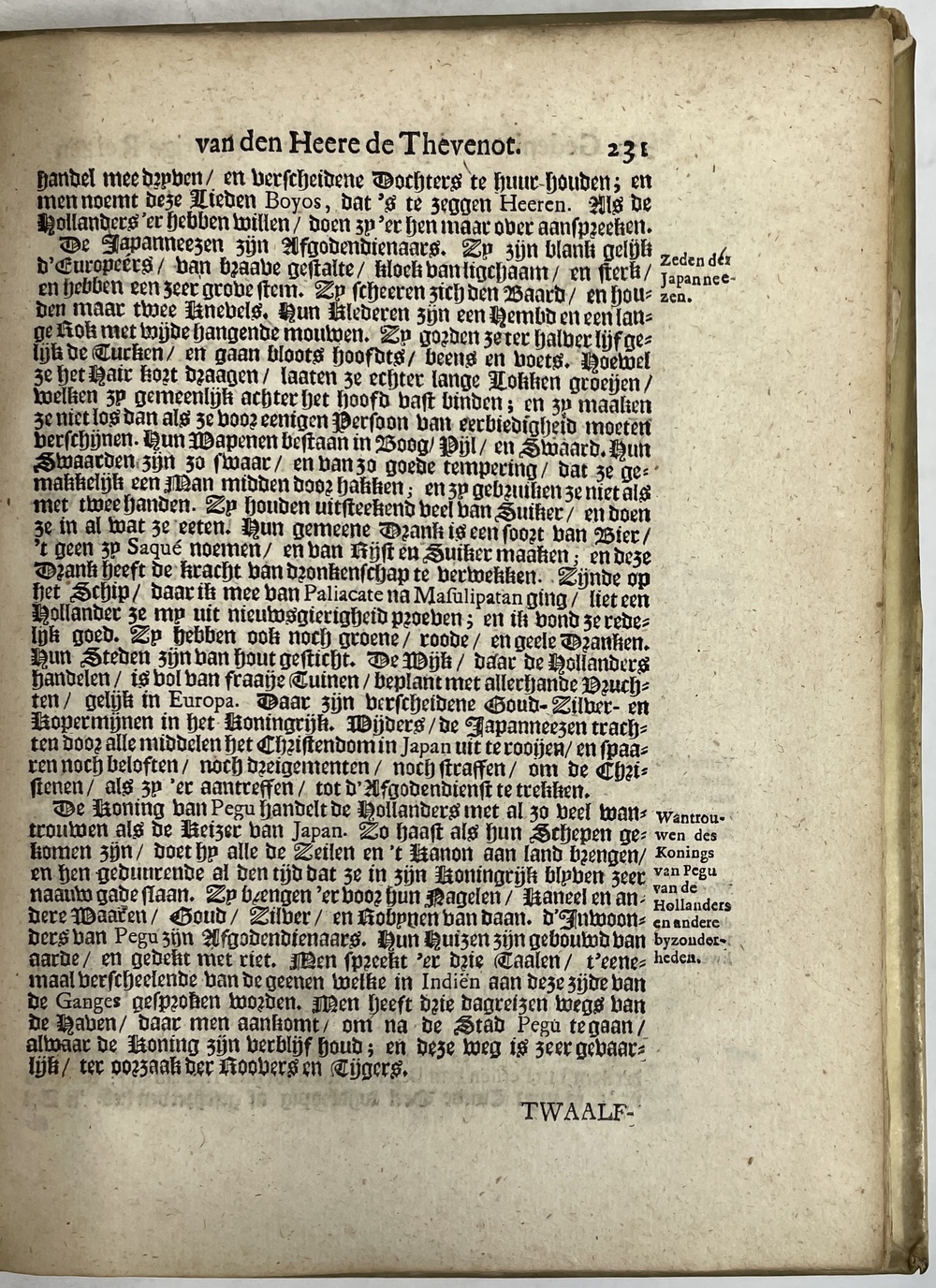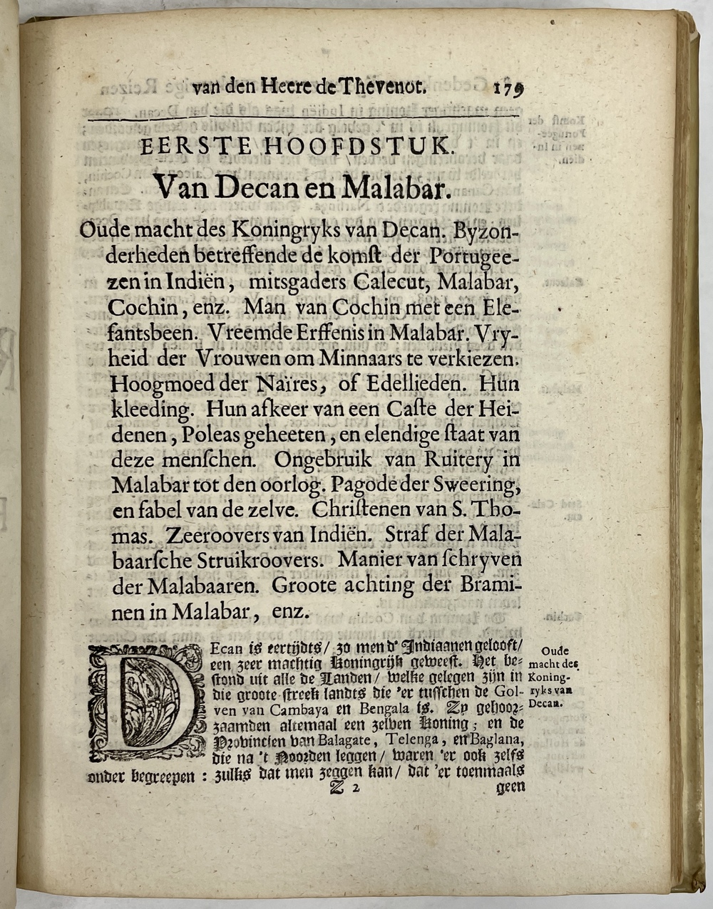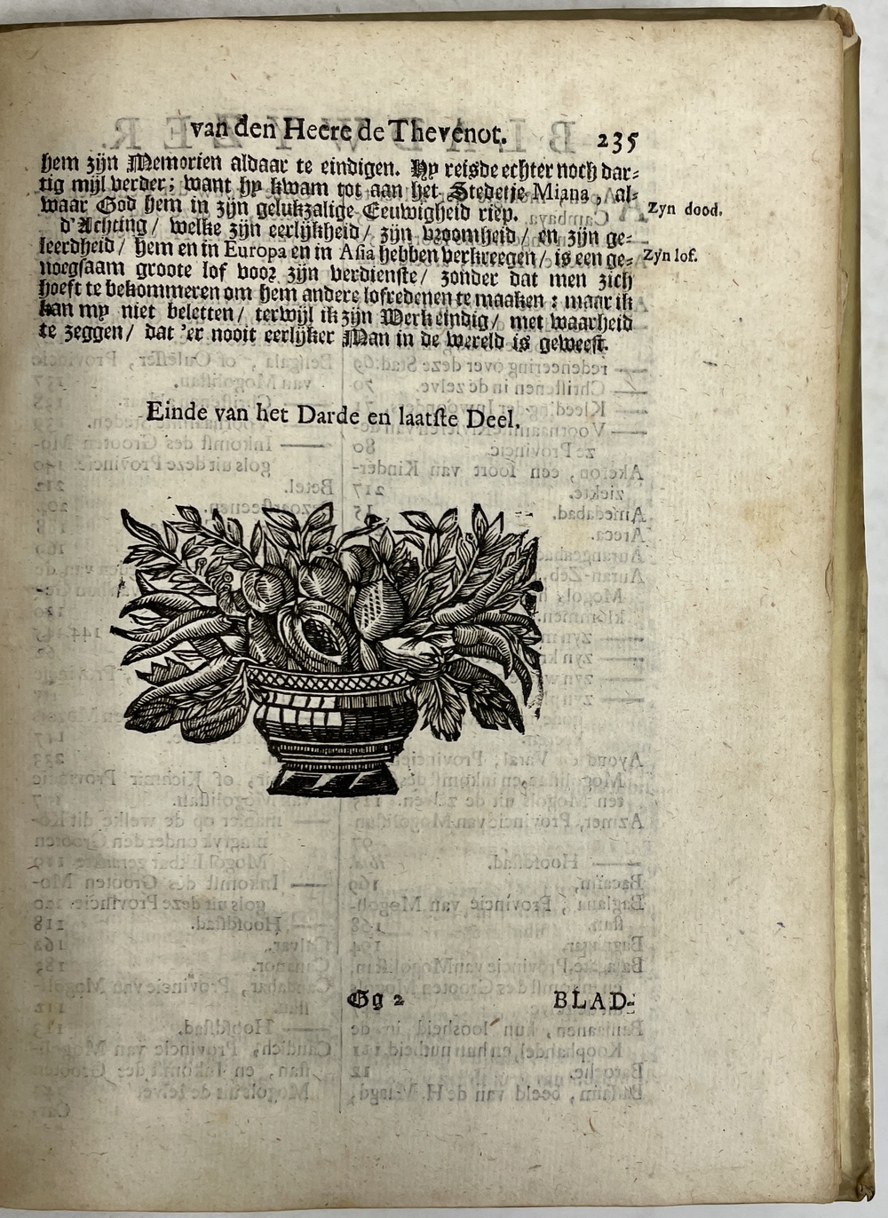 Gedenkwaardige en zeer Naauwkeurige REIZEN van den Hr. de THEVENOT. Darde en laaste Deel. Behelzende de beschryving van verscheidene Volkeren en Landen van Oost-Indien. Uit Fransch in ’t Nederduitsch gebracht DOOR G. V. BROEKHUIZEN….