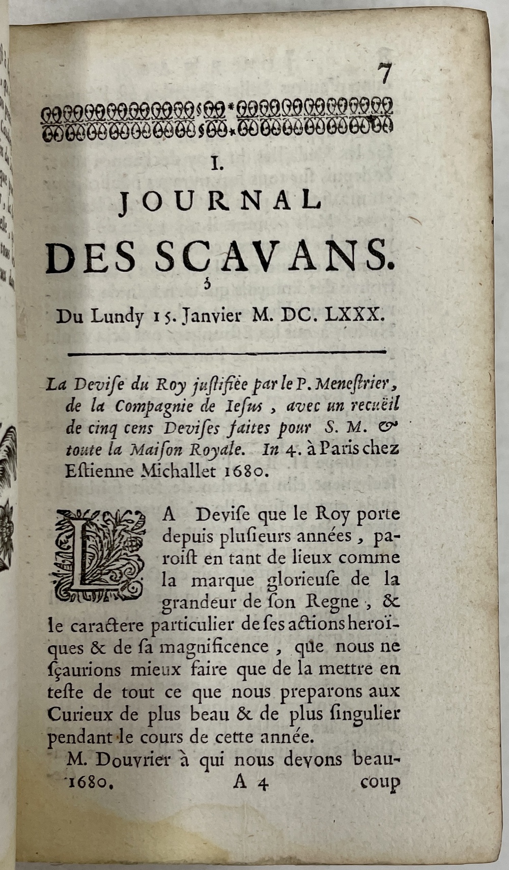 『ジュルナル・デ・サヴァン 1680年号(第8号)』