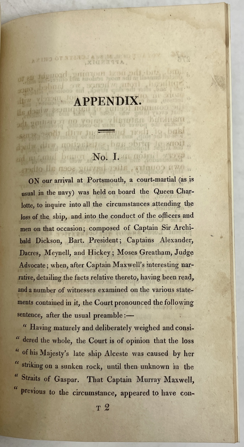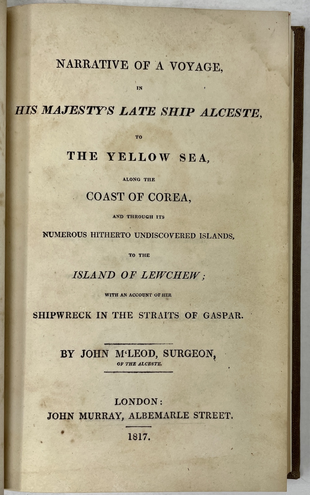 NARRATIVE OF A VOYAGE, IN HIS MAJESTY’S LATE SHIP ALCESTE, TO THE YELLOW SEA, AND THROUGH ITS NUMEROUS HITHERTO UNDISCOVERED ISLANDS, TO THE ISLAND OF LEWCHEW; WITH AN ACCOUNT OF HER SHIPWRECK IN THE STRAITS OF GASPAR.