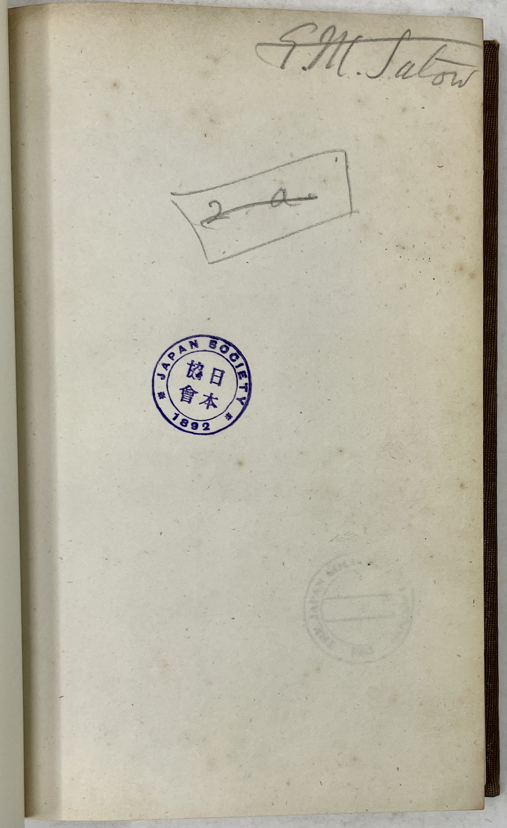ロンドン日本協会旧蔵本で、装丁も同協会によるもの。小口近辺にシミが見られるが、全体として良好な状態。