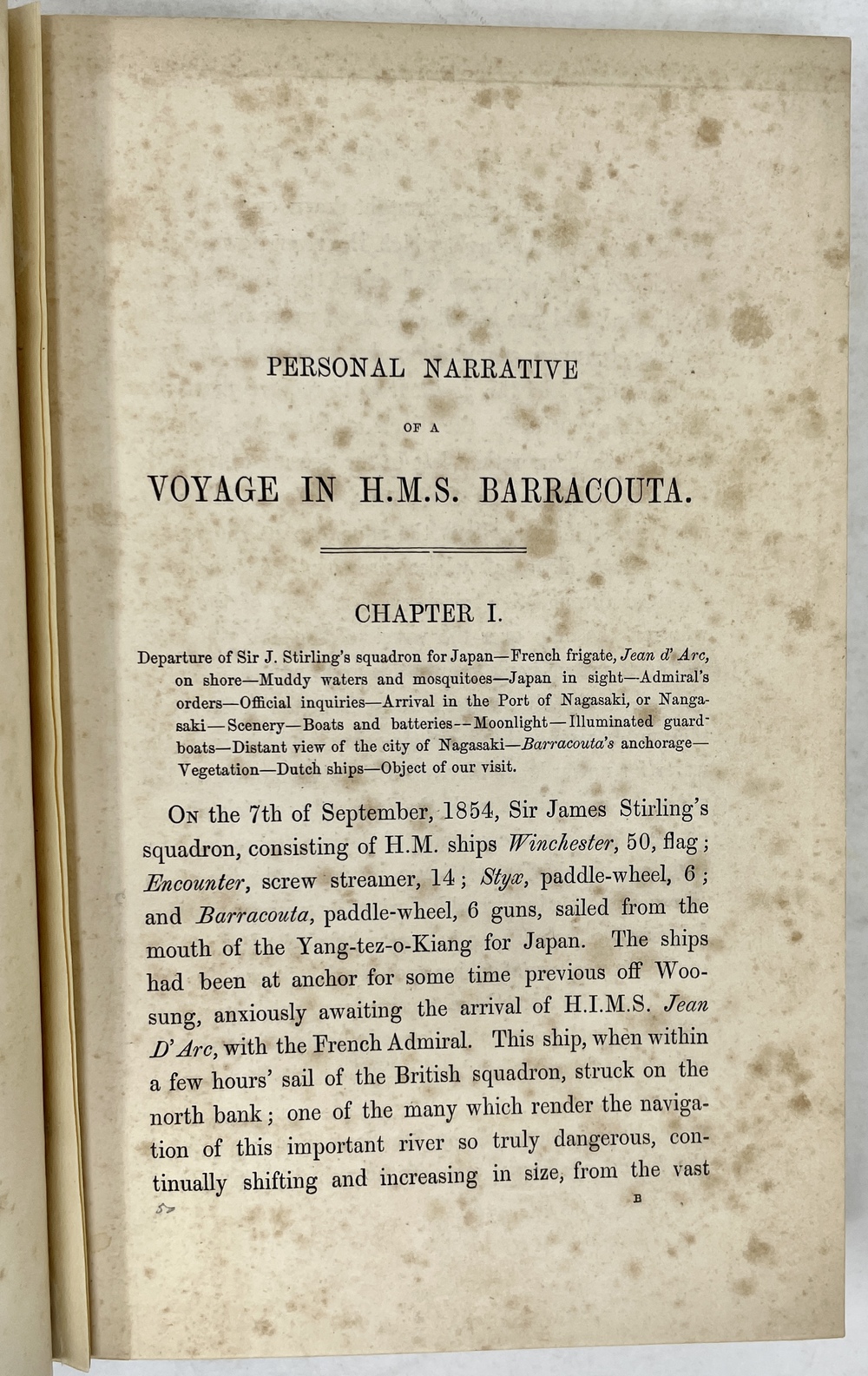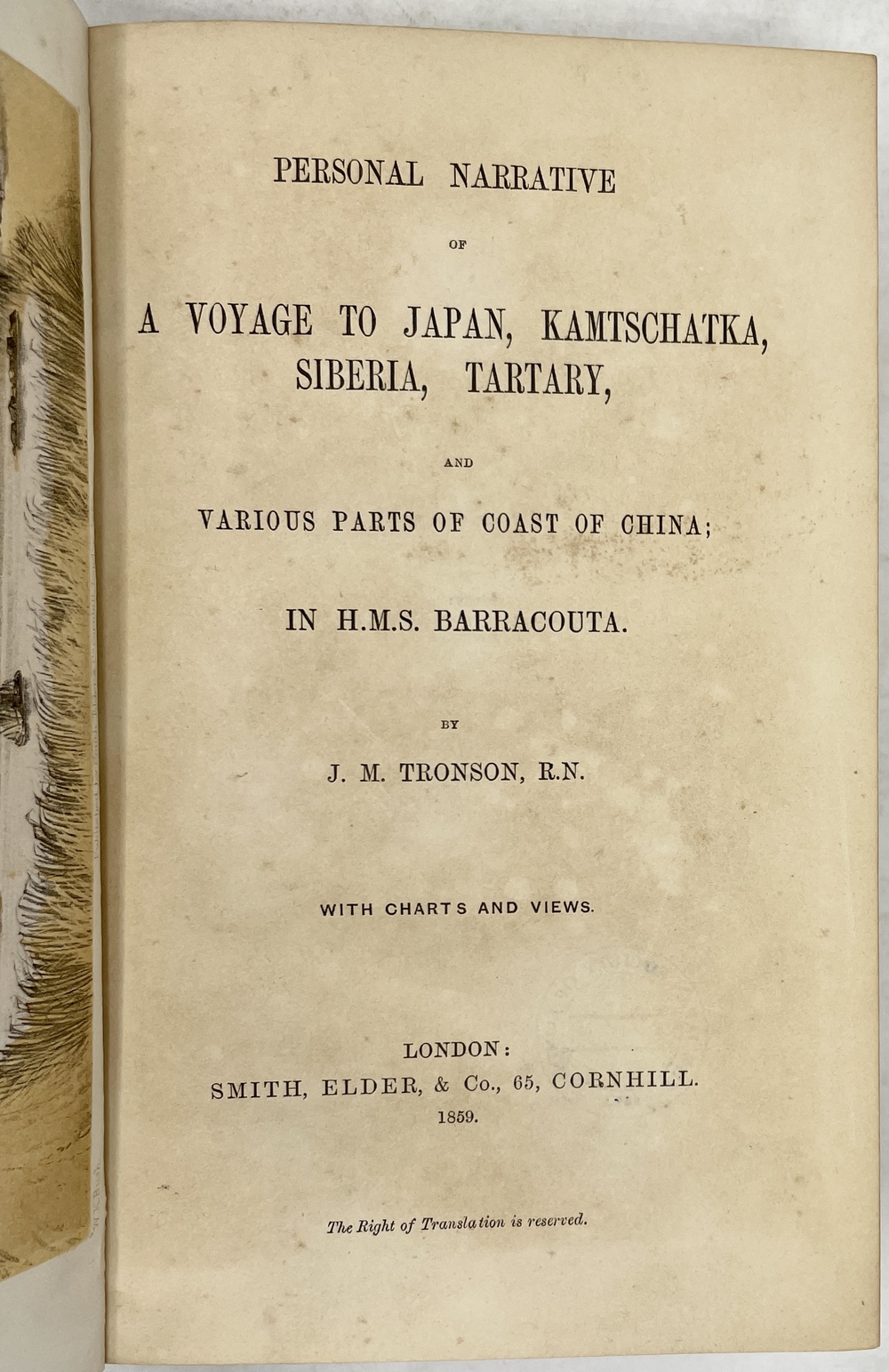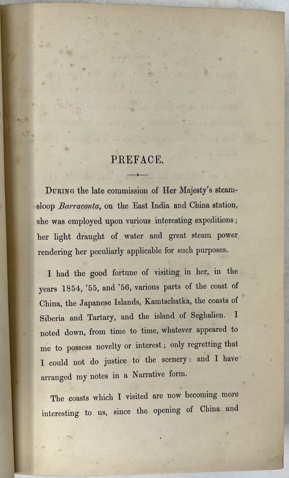 A VOYAGE TO JAPAN, KAMTSCHATKA, SIBERIA, TARTARY, AND VARIOUS PARTS OF COAST OF CHINA; IN H.M.S. BARRACOUTA…WITH CHARTS AND VIEWS.