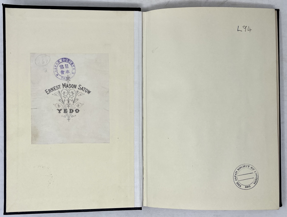 Exlibris Ernest Mason Satow (YEDO) / The Japan Society of London.
