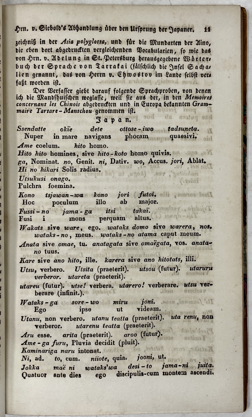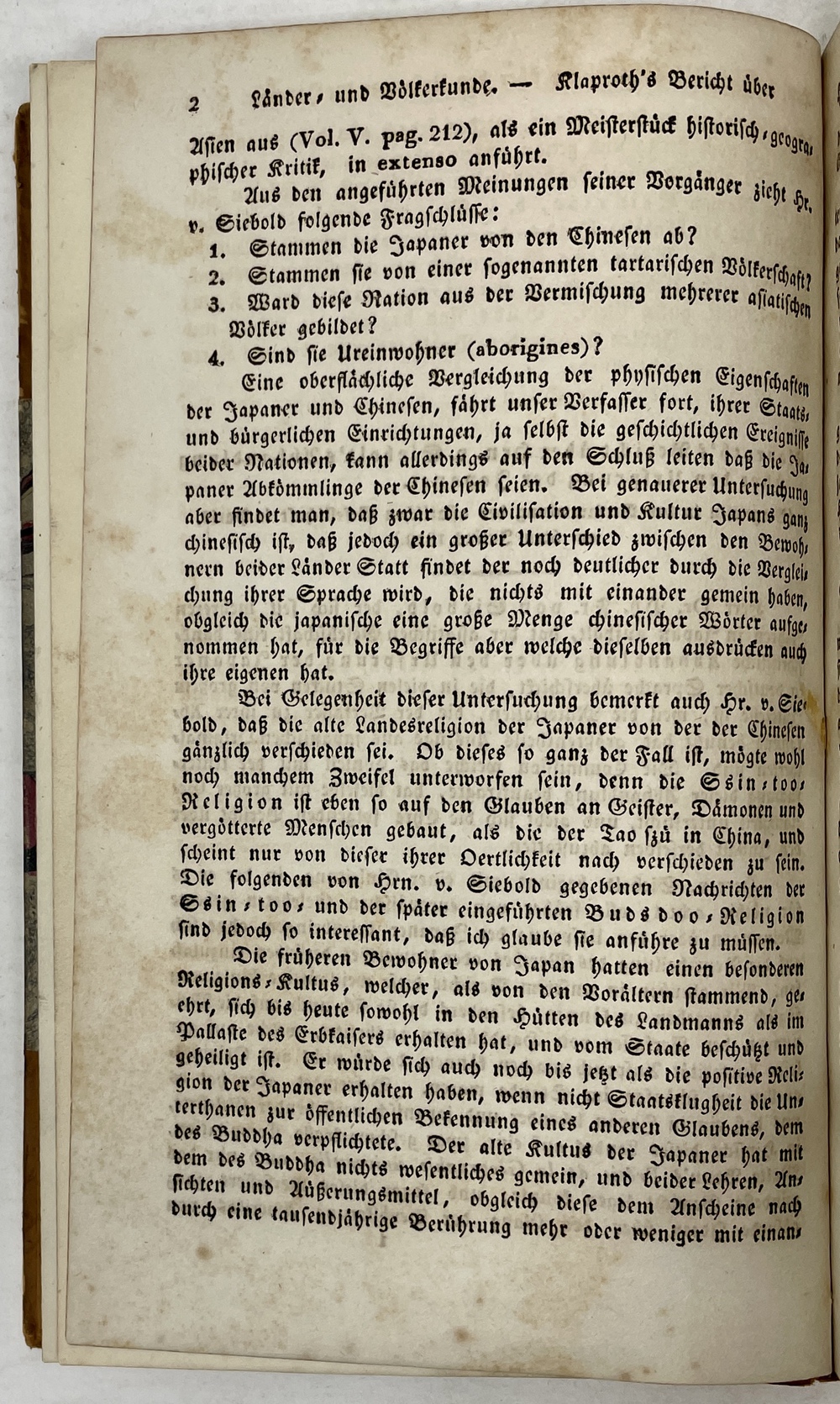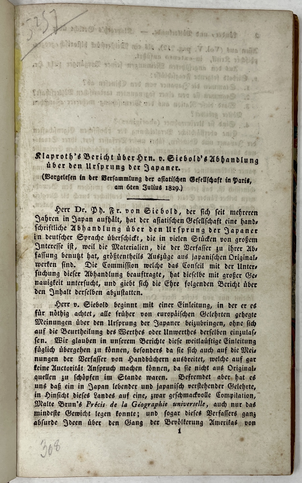 Klaproth’s Bericht über Hrn. P. Siebold’s Abhandlung über den Ursprung der Japaner. (Vorgelesen in der Versammlung der asiatischen Gesellschaft in Paris, am 6ten Julius 1829.)